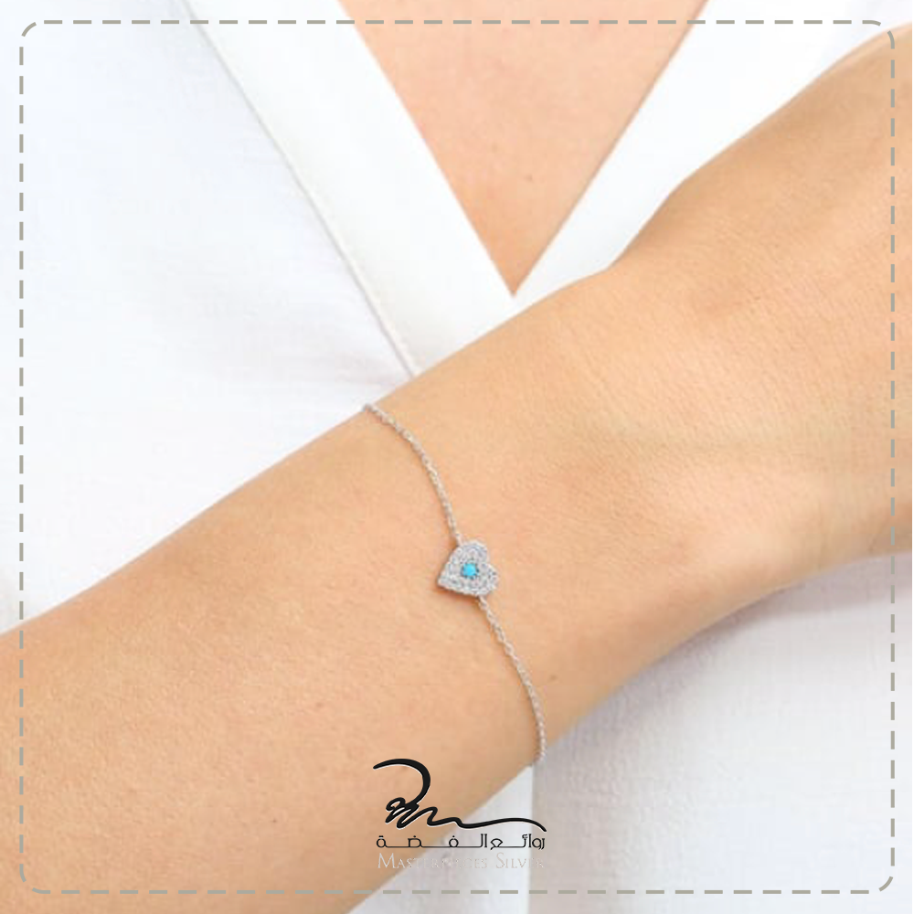 اقتني سوارة فضة النسائي بتصميم قلب وأحجار كريمة زرقاء الآن وأضفي لمسة من الفخامة والأناقة إلى إطلالتك اليومية أو في المناسبات الخاصة.
