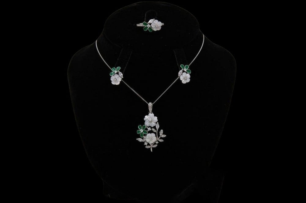 تعد أطقم فضة ناعمة من الصدف الأنيق هو أحد الأطقم المميزة التي نعرضها لكم ويتميز بشكله الأنيق والمميز والذي يتناسب مع جميع السيدات المحبة للجاذبية والأناقة، كما أنه يتناسب مع جميع الأجواء والمناسبات، تم صناعة المنتج من الفضة من عيار 925 وقد حرصنا على أن تكون هذه المجوهرات مصنوعة من أفضل أنواع الفضة العالمية والتي تحتوي على أحجار الزركون المميزة والتي تحتوي على لون أخضر مميز دعونا نتعرف أكثر عن المنتج من خلال الآتي.