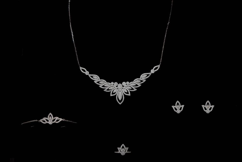 - جاء التصميم للخاتم والأقراط مشابه لزهرة غاية في الجاذبية والقلادة فاقت حدود الجمال والأناقة
