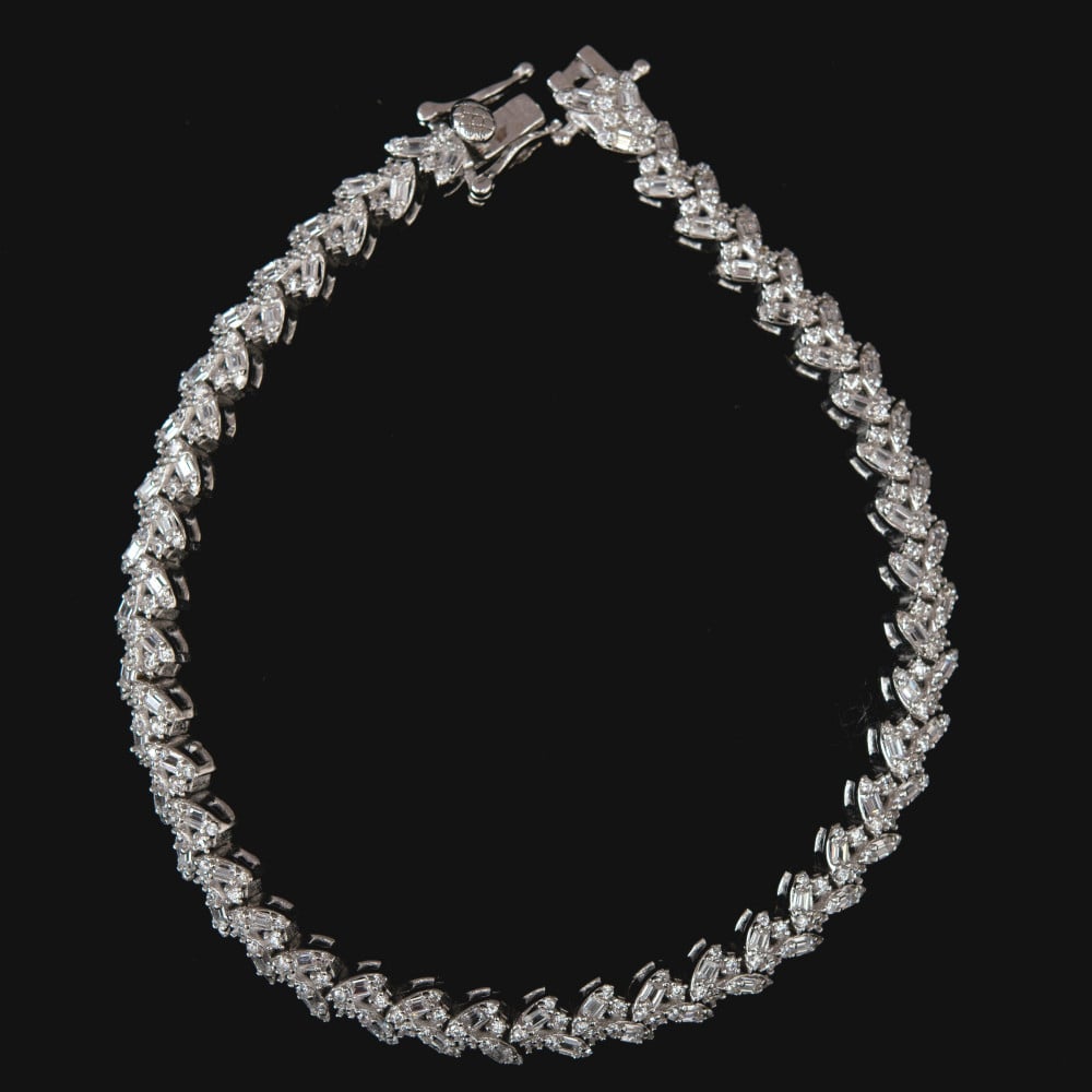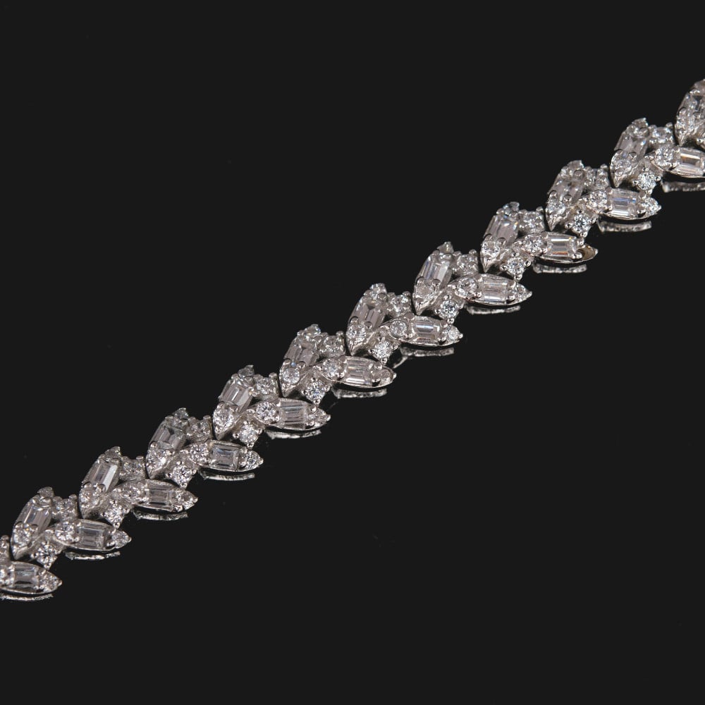 صممت إسورة فضة ، بشكل فخم وراقي ويتناسب مع جميع أذواق الفتيات، حيث جاءت الإسورة بمزيج من أحجار الزركون الماسي، وأحجار الباجيت الفخم، لتصبح الإسورة كـقطعة ملكية في غاية الفخامة.