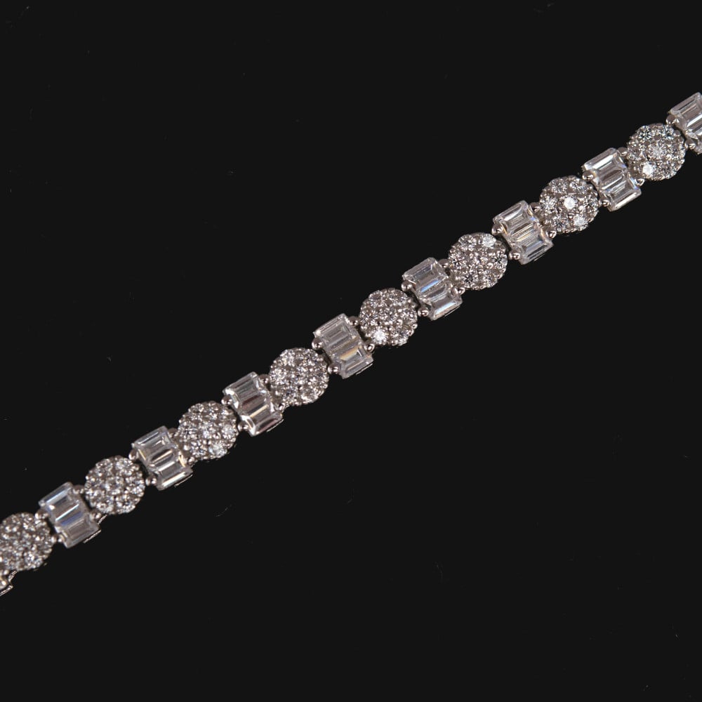 نقدم لك قطعة مجوهرات تم تصميمها بكل حب وعناية خاصة، حتى تظهر لا تلك القطعة الفريدة التي زينت بحجر الزركون الماسي شبيه الألماس، وحجر الباجيت الفخم، لتظهر كقطعة ملكية تناسب أصحاب الأناقة والذوق الرفيع.