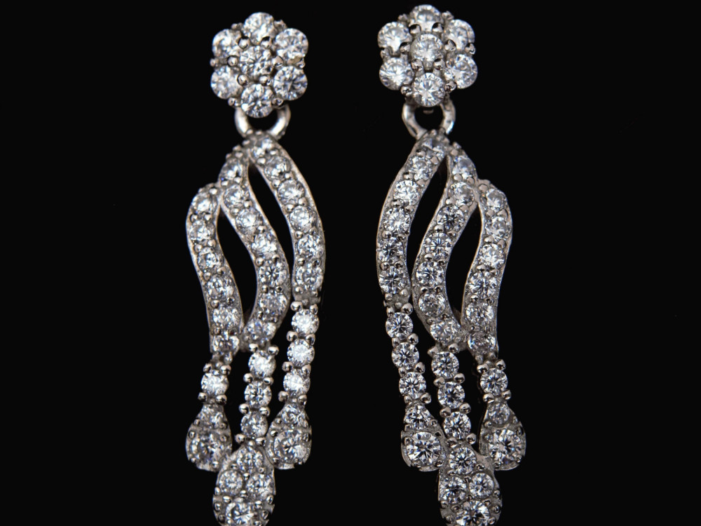 - صنع بأحدث الطرق، جاء التصميم على شكل ورده صغيرة مليئة بالزركون تتدلل من خطوط بفصوص الزركون الماسية