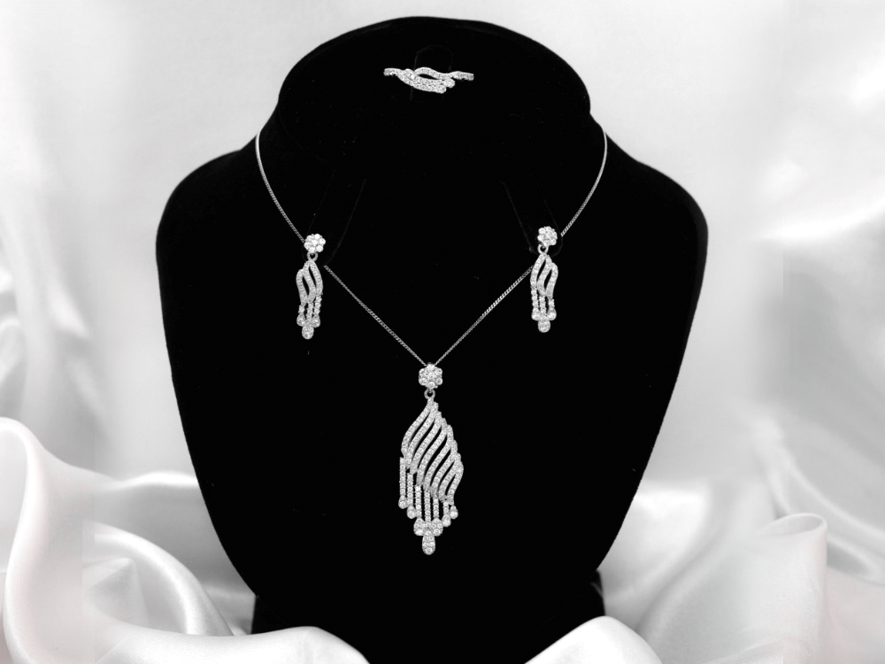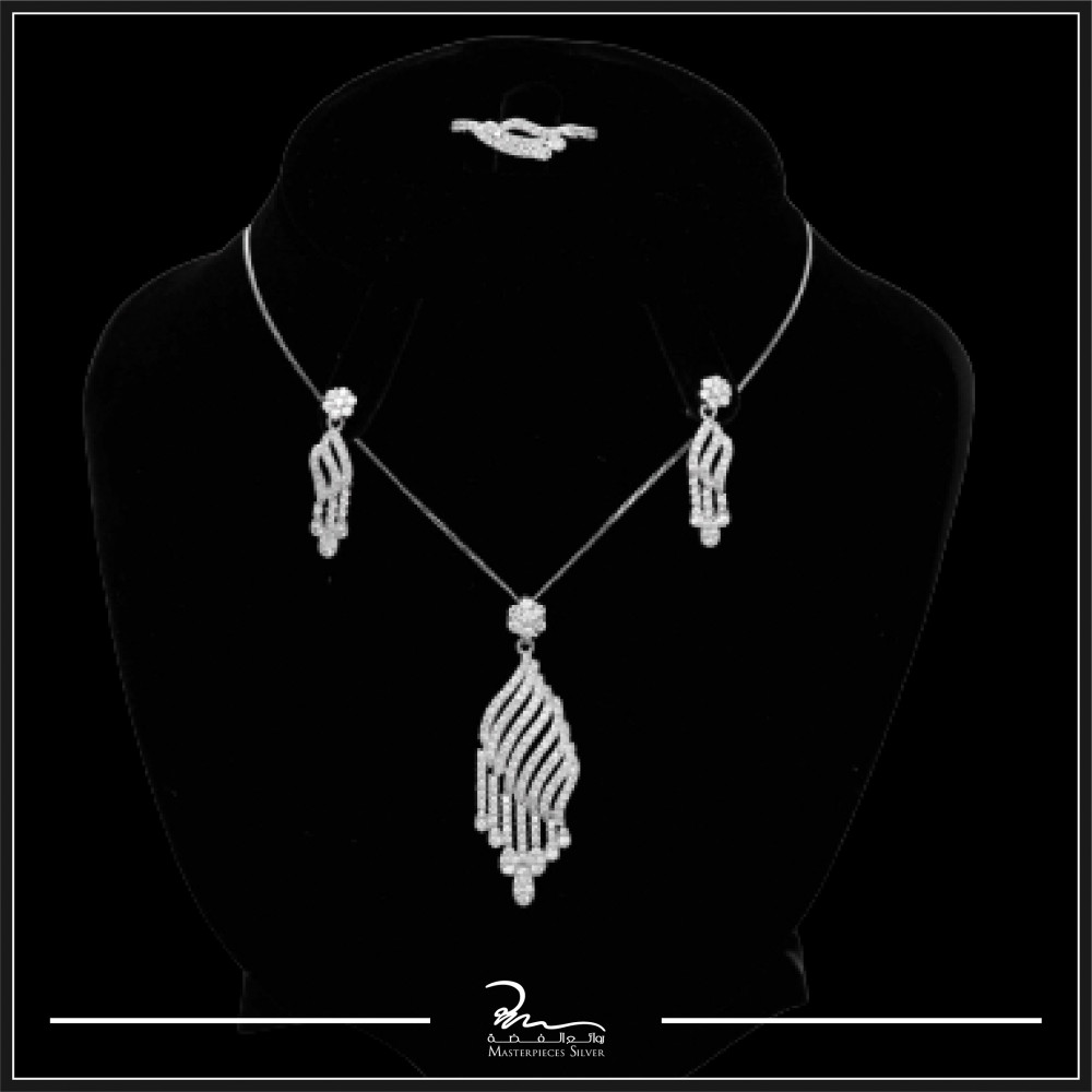 - قلادة وخاتم وزوج ،قراط من أجود خامات الفضة عيار 925 بتصميم عصري وأنيق