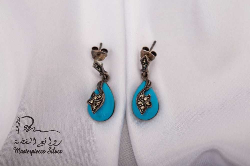 لون المنتج: اللون الفضي وحجر اللفيروز