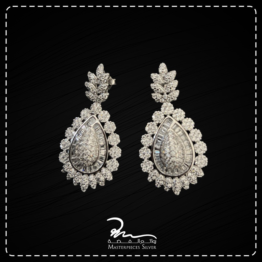 حلق شبيه الألماس الأبيض يتميز بجاذبية لا تليق إلا بالأميرات فكونى أميرة روائع الفضة باروع تصميم يعتبر الحلق الفضة من المجوهرات الفضة كهدية قيمة للغالين عليك.