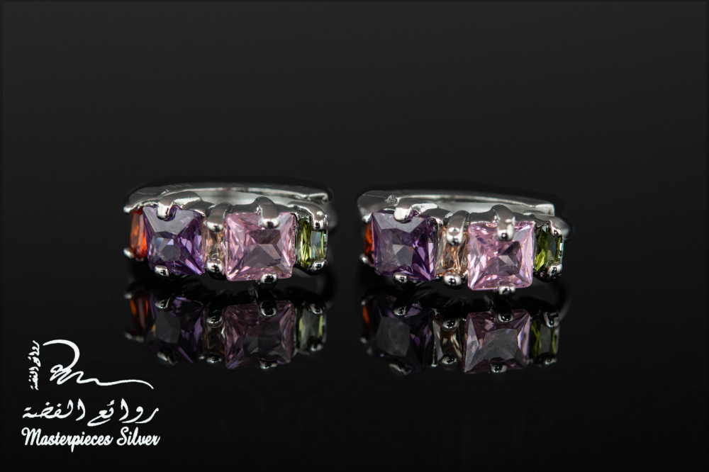 - وجاء تصميم الحلق بشكل يوحى بأن أحجار الزركون الملونة تشبه قطع الألماس اللامعة التي تعطيكي جاذبية وسحر