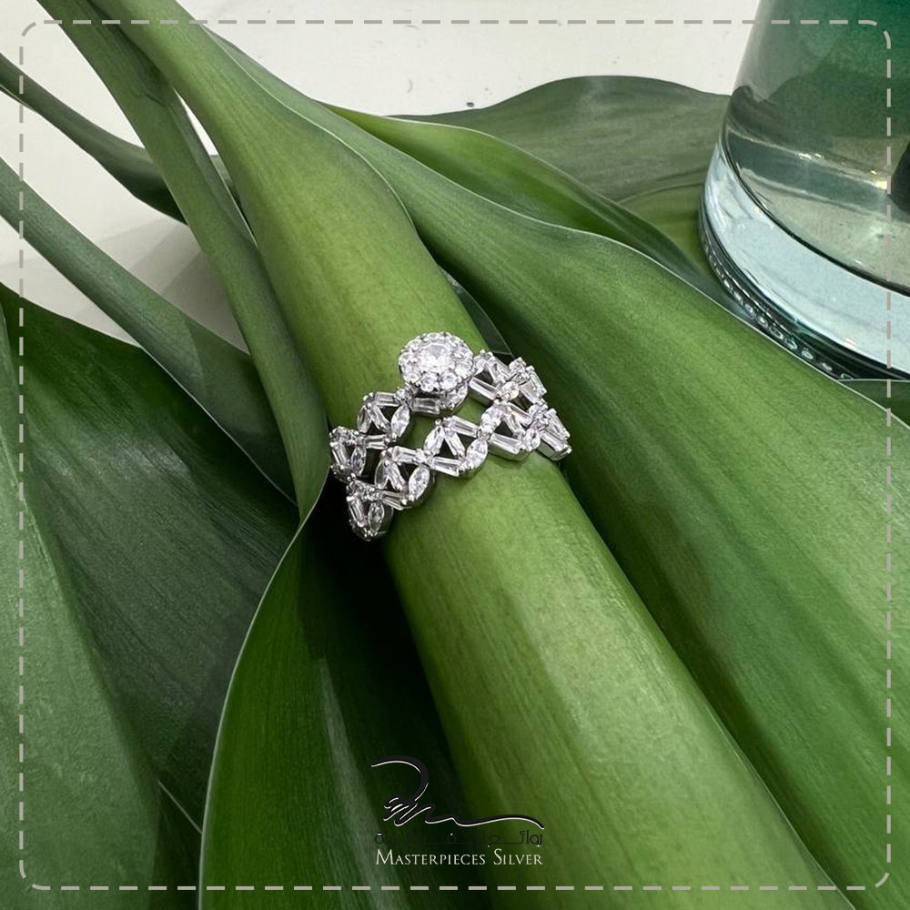 خاتم بتصميم دبل توينز فضة مرصعة بزركون عالي الجودة - جمال يشبه الألماس