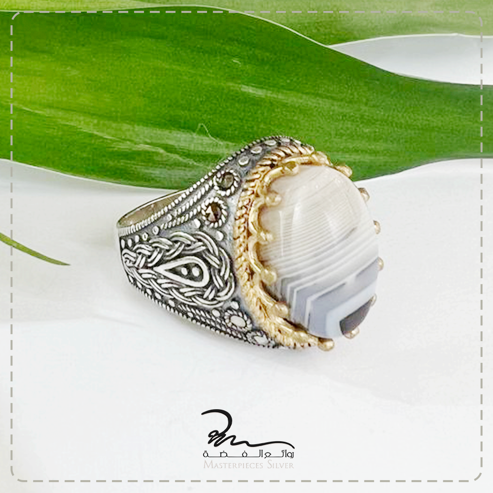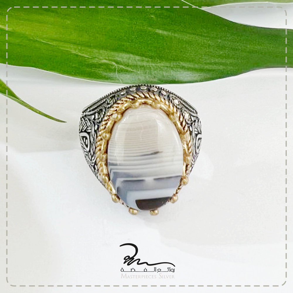 خاتم رجالي فضة وحجر طبيعي