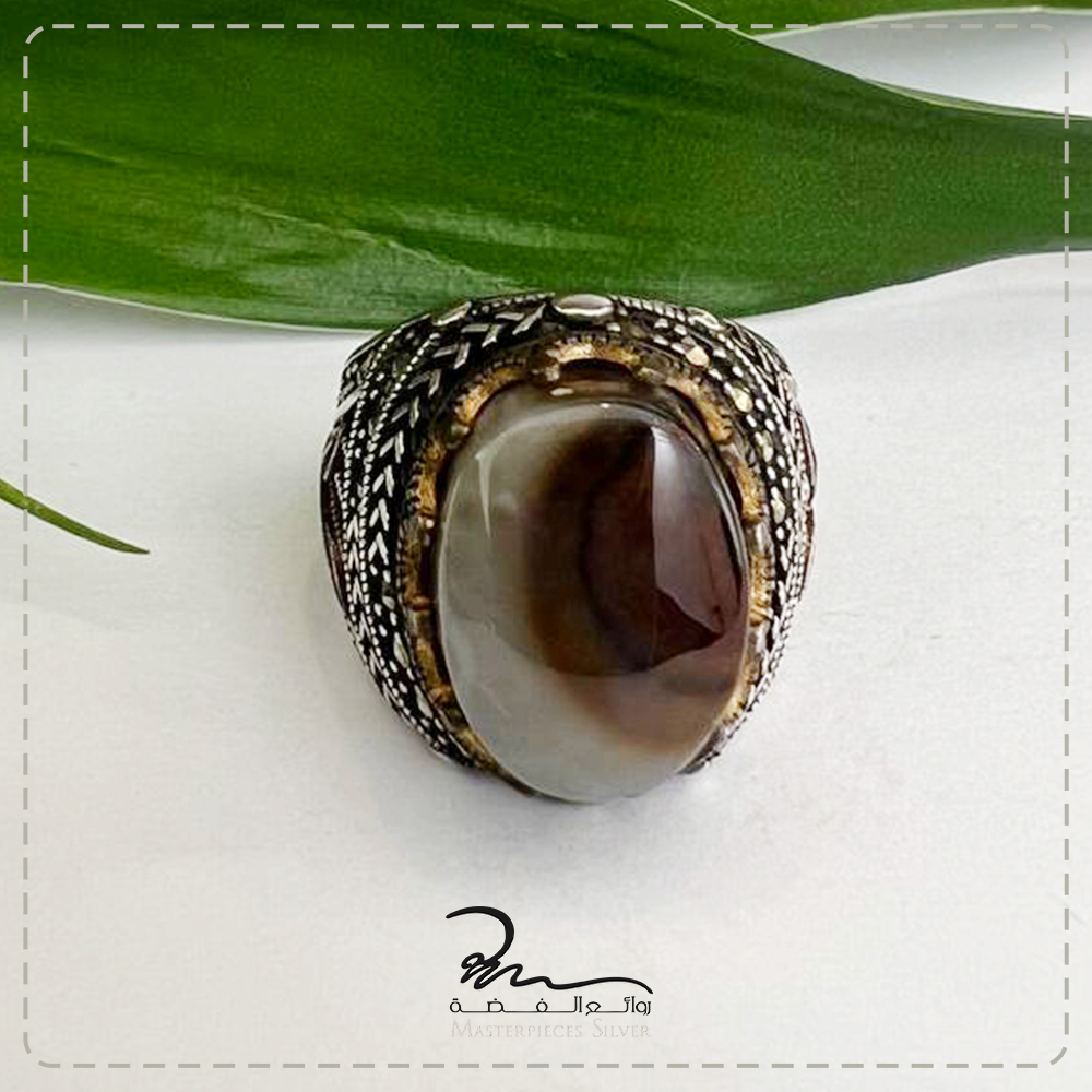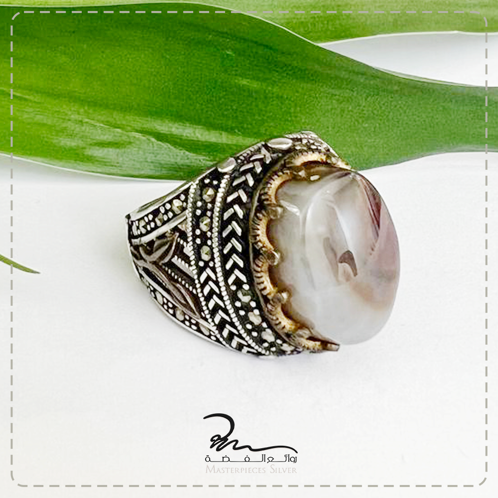 خاتم عقيق رجالي فخم فضة خالص عيار 925