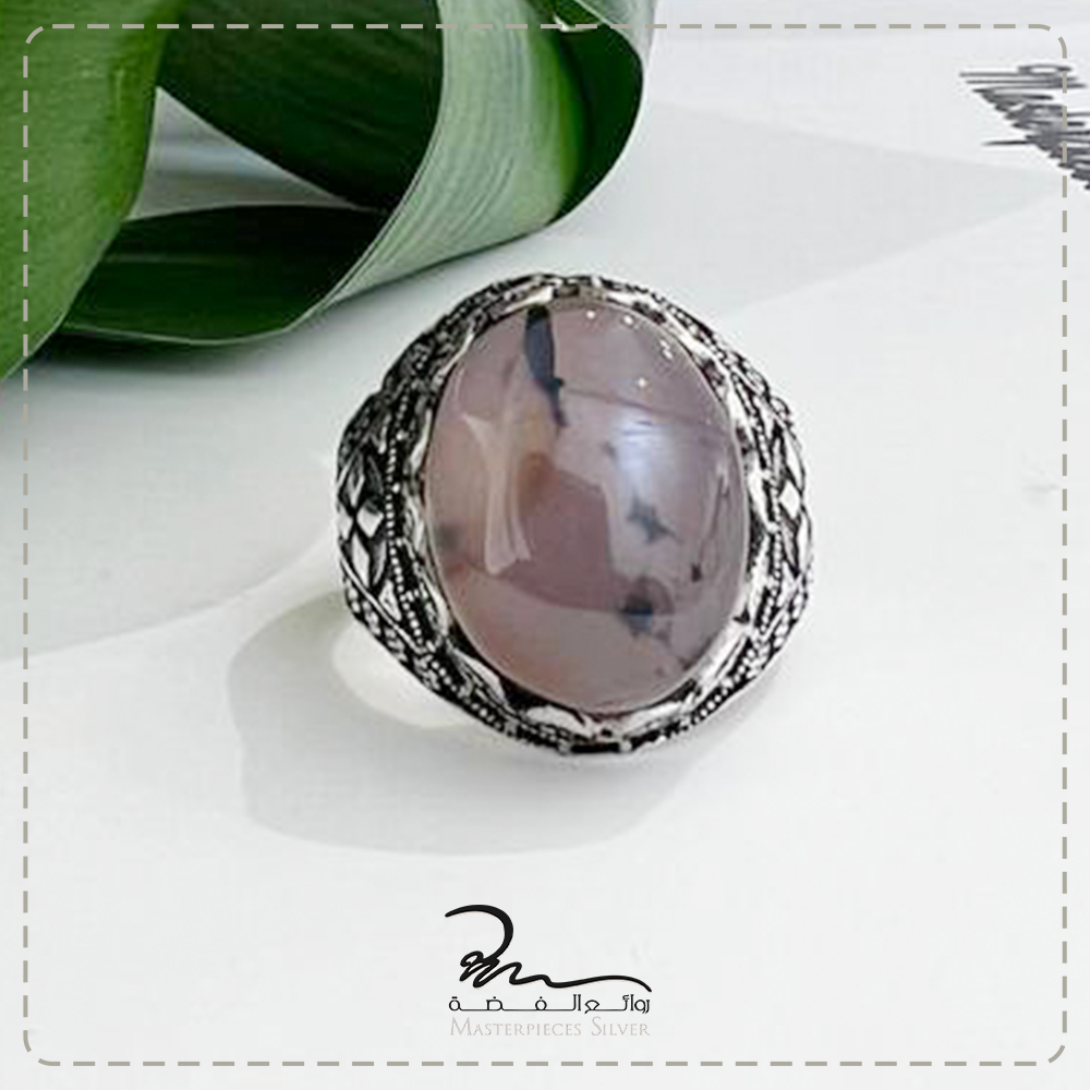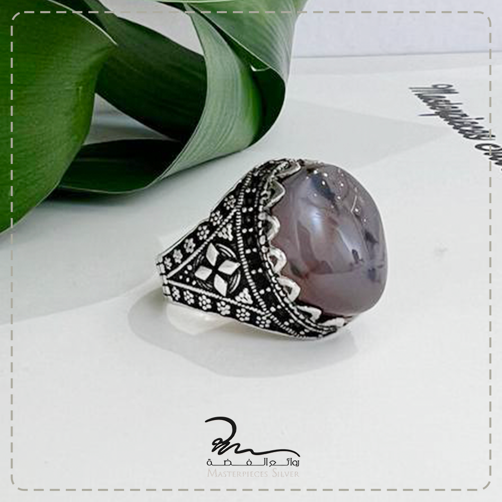 خاتم فضة وعقيق نادر رجالي