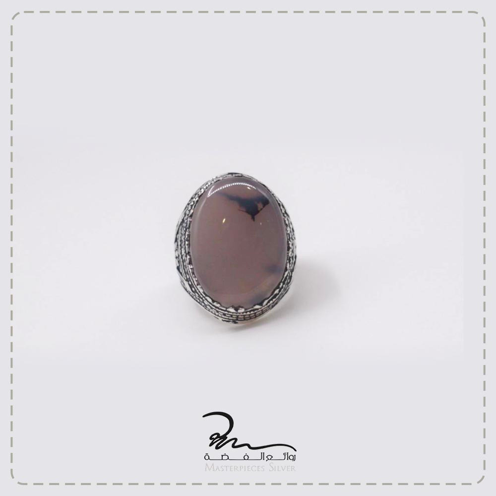 بشكل بيضاوي يحتوي في منتصفه على حجر العقيق اليماني الفخم.