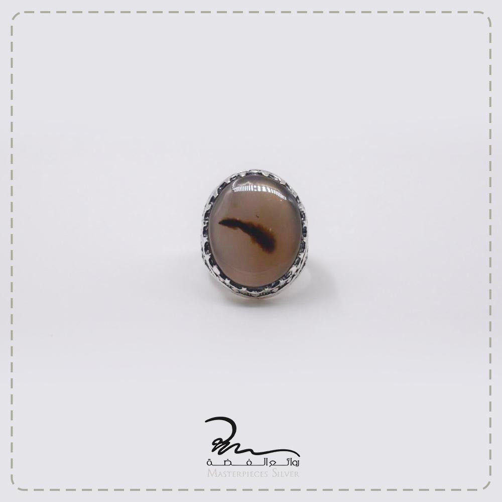بشكل بيضاوي يحتوي في منتصفه على حجر العقيق اليماني الفخم.