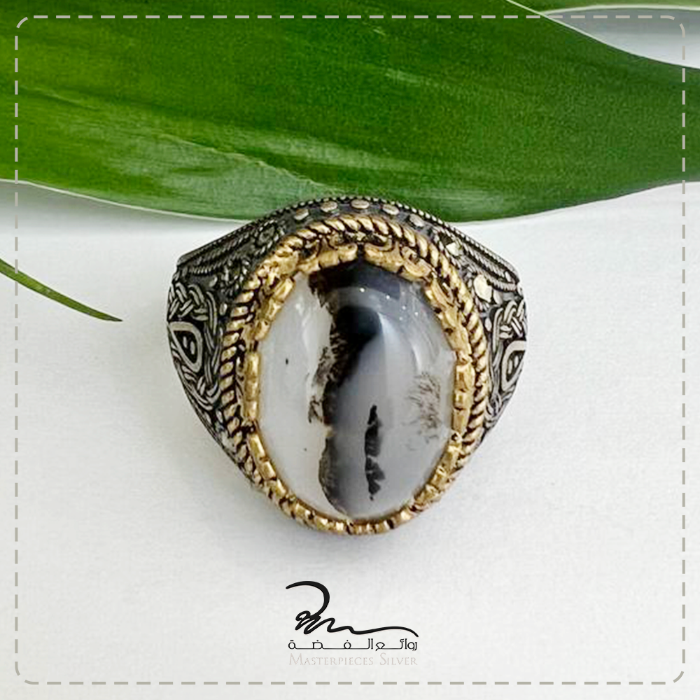 خاتم عقيق رجالي من الفضة والعقيق اليماني