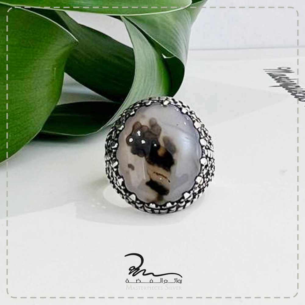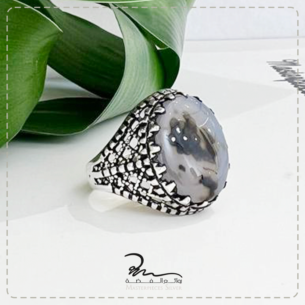 خاتم عقيق رجالي من الفضة والعقيق اليماني