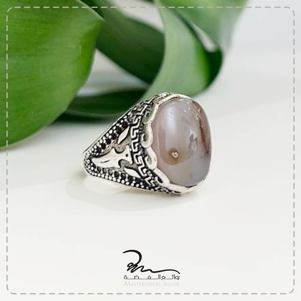 خاتم رجالي فضة وحجر طبيعي