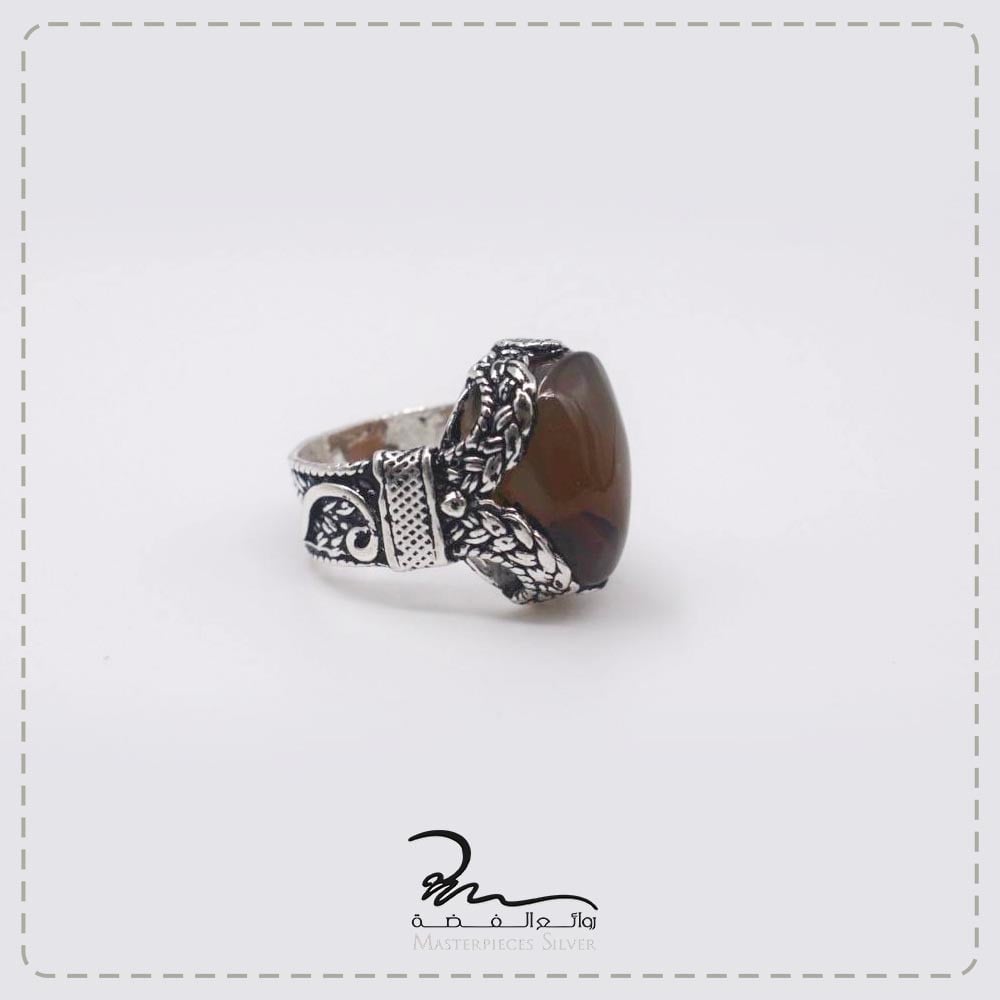 بشكل بيضاوي يحتوي في منتصفه على حجر العقيق اليماني الفخم.