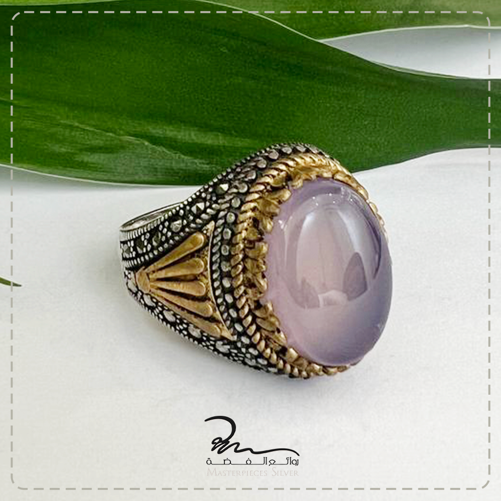 خاتم عقيق يماني اسود وفضة خالص للرجال