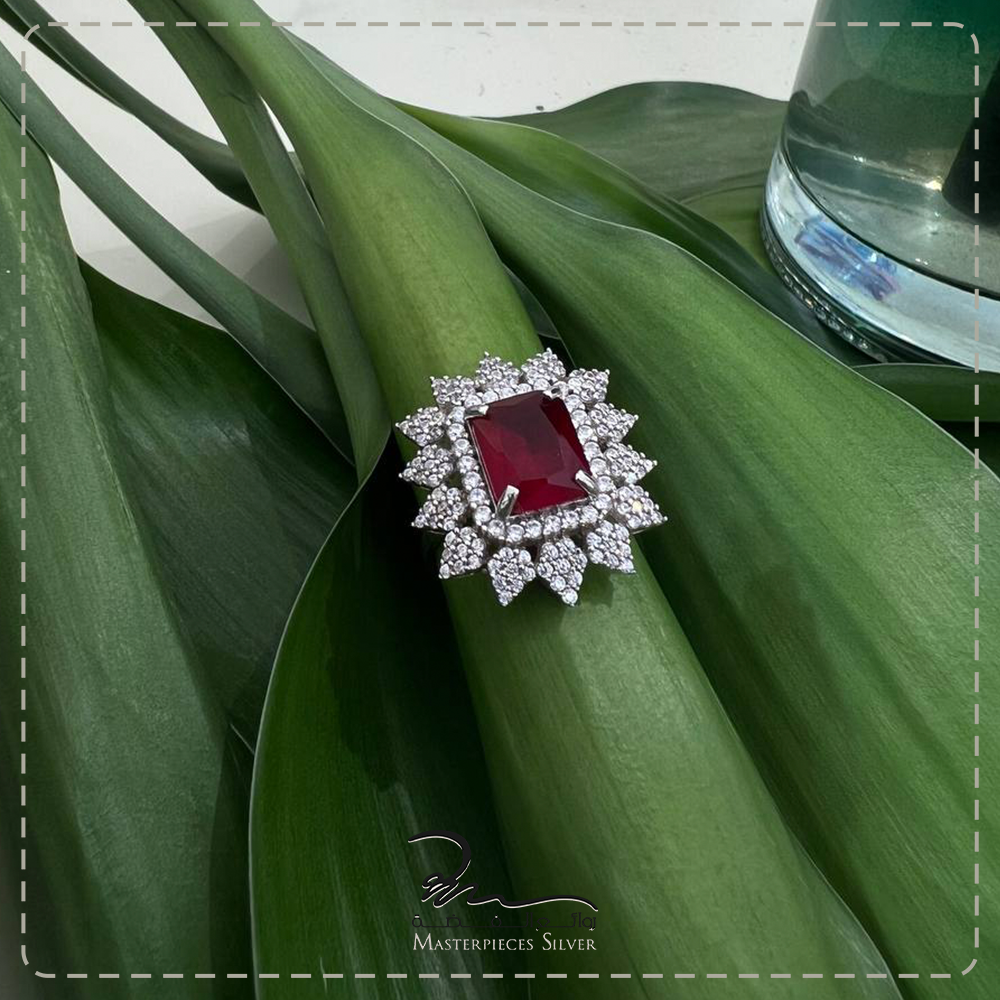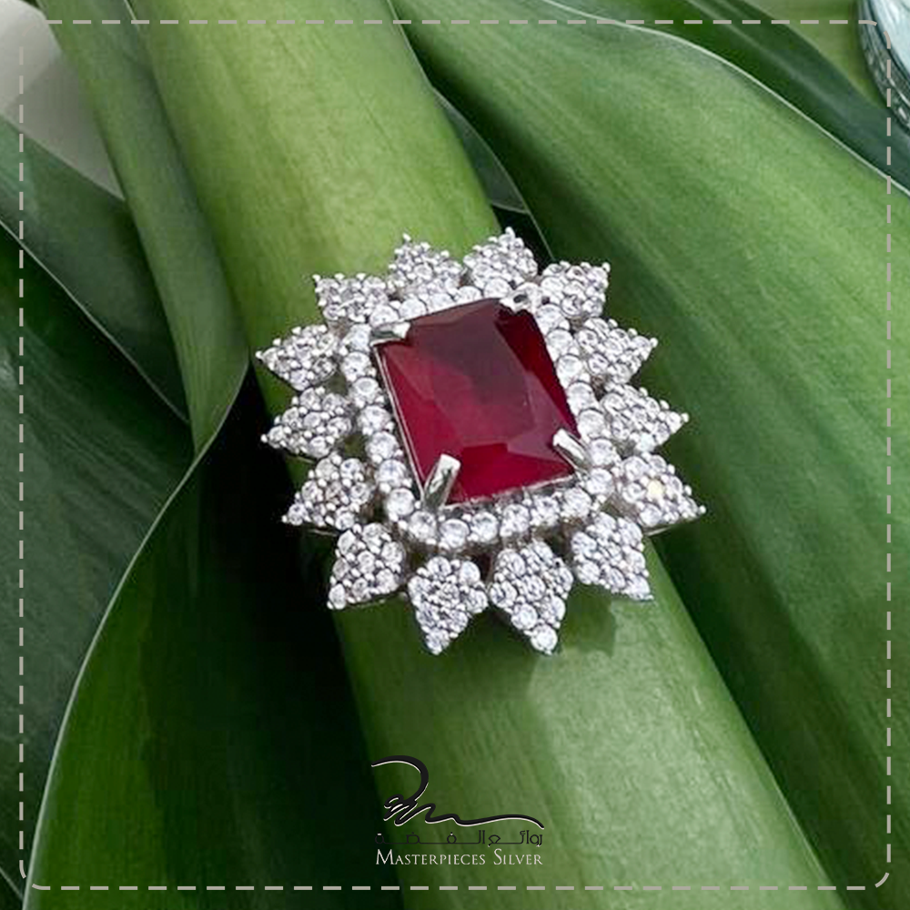 خاتم نسائي فضه مرصع زركون شبيه الالماس