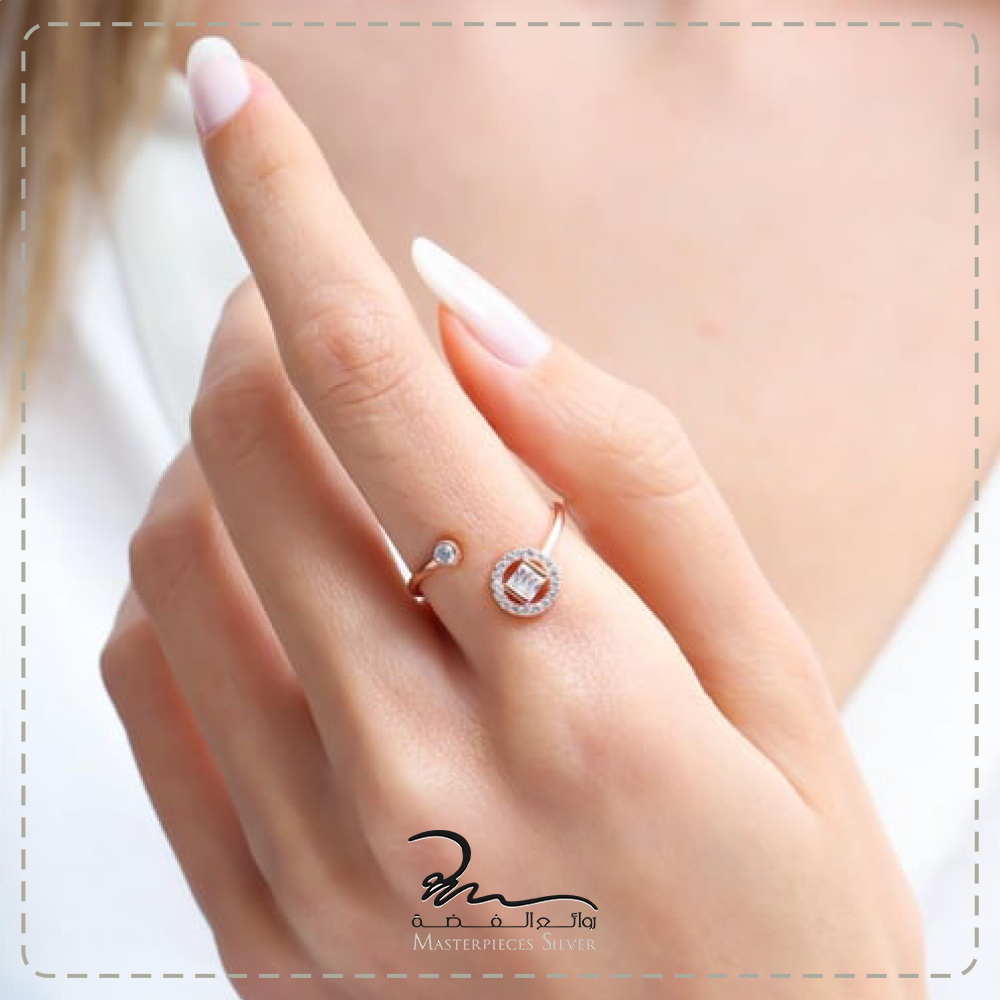 يتميز هذا الخاتم بتصميمه الفريد والعصري الذي يلبي أذواق السيدات من مختلف الأعمار. تم تصميم الخاتم بدقة واهتمام بأدق التفاصيل ليمنحك مظهرًا راقيًا وفخمًا في كل مناسبة.