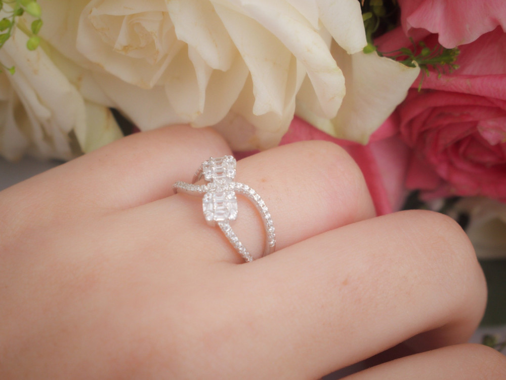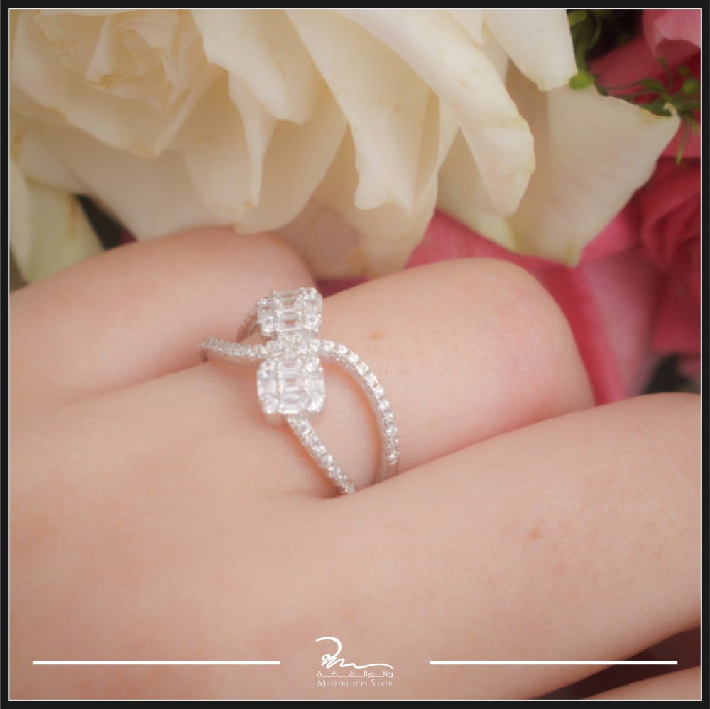 تم تصميم خاتم فضة انيق بشكل يناسب جميع الأذواق، حيث جاء تصميمه على هيئة وردة متفتحة تتزين بأحجار الزركون شبيه الألأماس الفخمة، لتظهر لنا قطعة مجوهرات في غاية الرقي والأناقة.