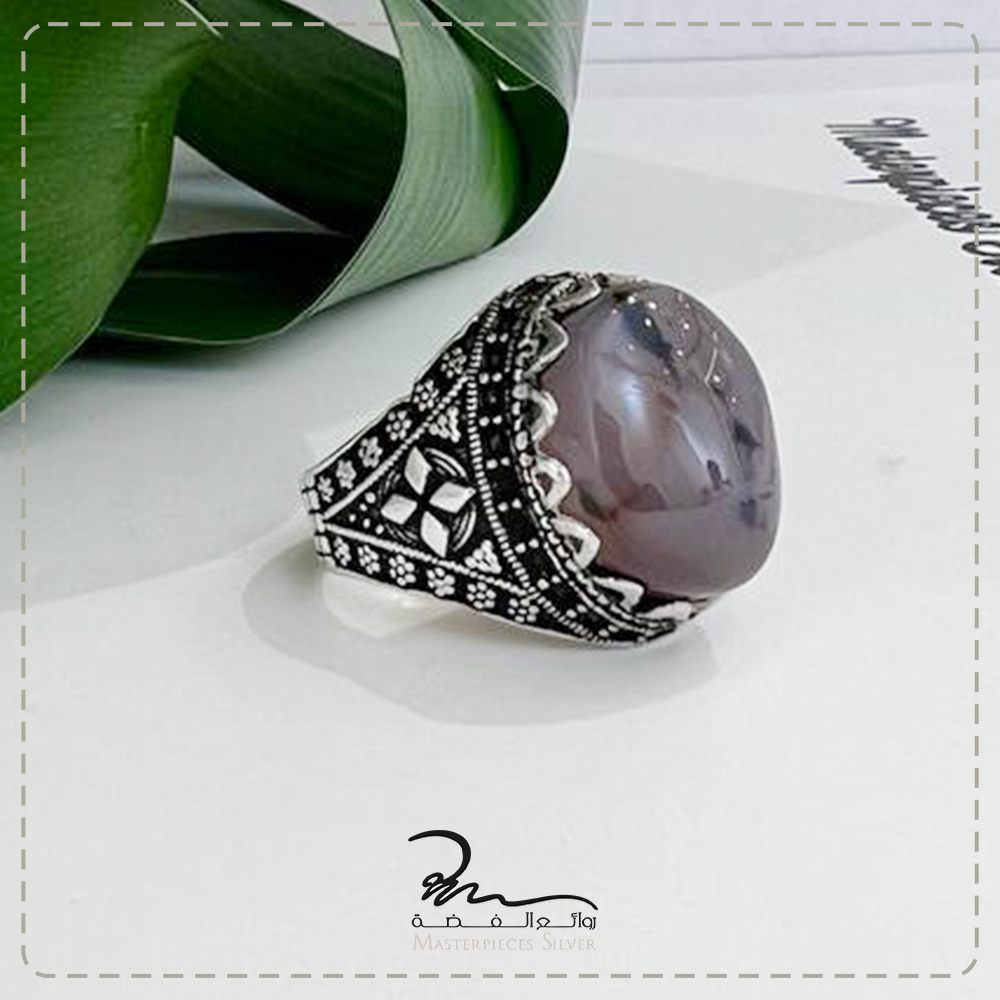 اجعل إطلالتك أكثر تميزًا مع هذا الخاتم الفاخر المصنوع من الفضة التايلندية عيار 925 والمزين بحجر العقيق الطبيعي الفريد بتدرجاته اللونية الساحرة! 💎 تصميمه الرجالي الجذاب يعكس الذوق الرفيع ويجمع بين الأناقة والقوة.