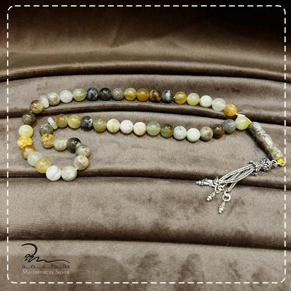 مواصفات السبحة بالعقيق البرازيلي الرخامي:
