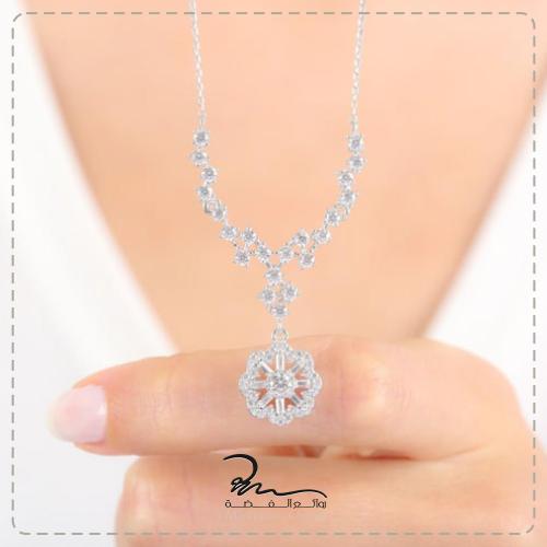 سلسلة فضة بشكل وردة مرصعة بزركون لامع