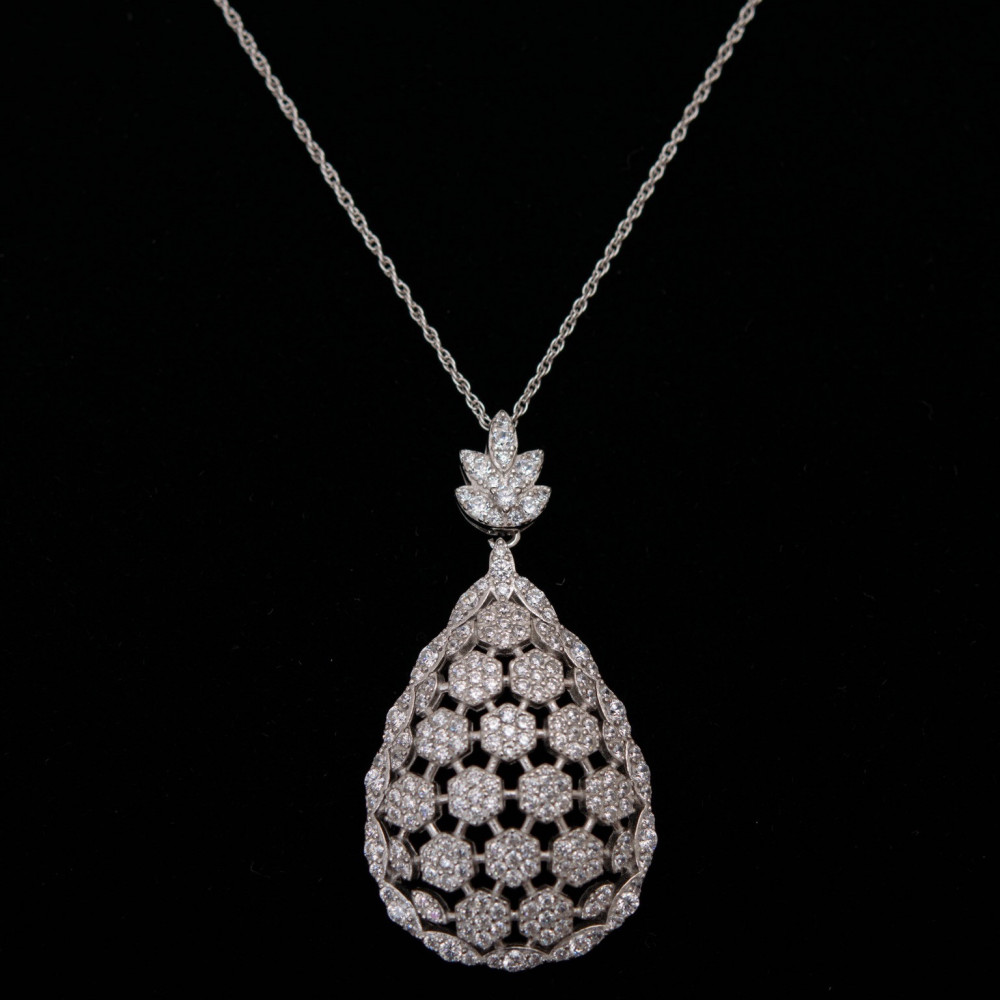 - يعكس إطلالة كلها جاذبية حيث صممت السلسلة كثمرة الكمثري التى تزينها وتتربع فوق عرشها أحجار الزركون اللامعة