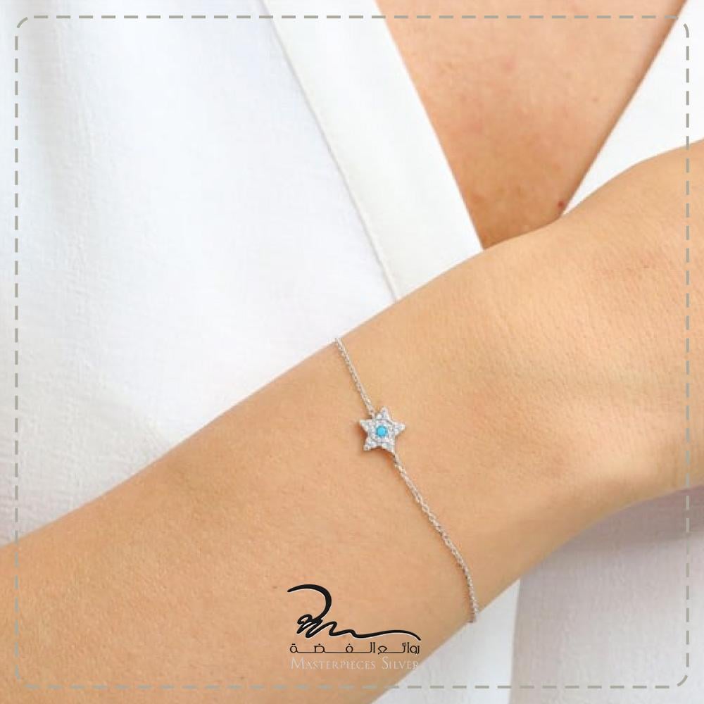 اقتني سوار الفضة النسائي بتصميم نجمة وأحجار كريمة زرقاء الآن وأضفي لمسة من الفخامة والأناقة إلى إطلالتك اليومية أو في المناسبات الخاصة.