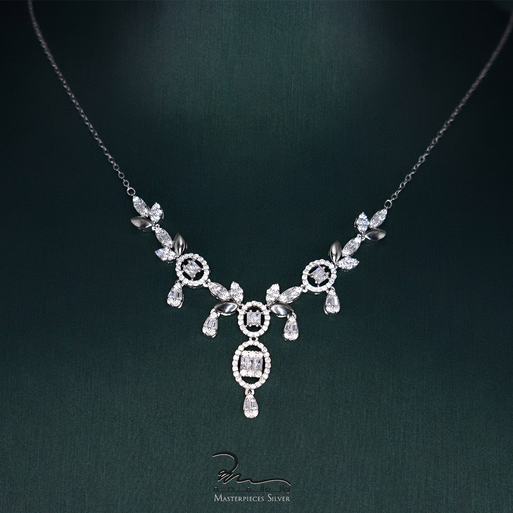 طقم فضة وزركون شبيه ألماس فاخر – تصميم أنيق يليق بكِ