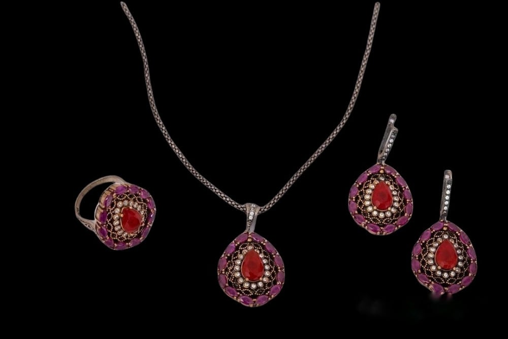 نصف طقم فضة تركي حجر روبي وزركون من افخم الاطقم الفضه مع الاحجار الكريمة