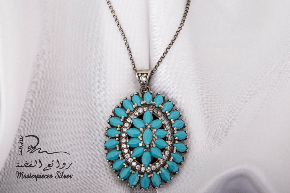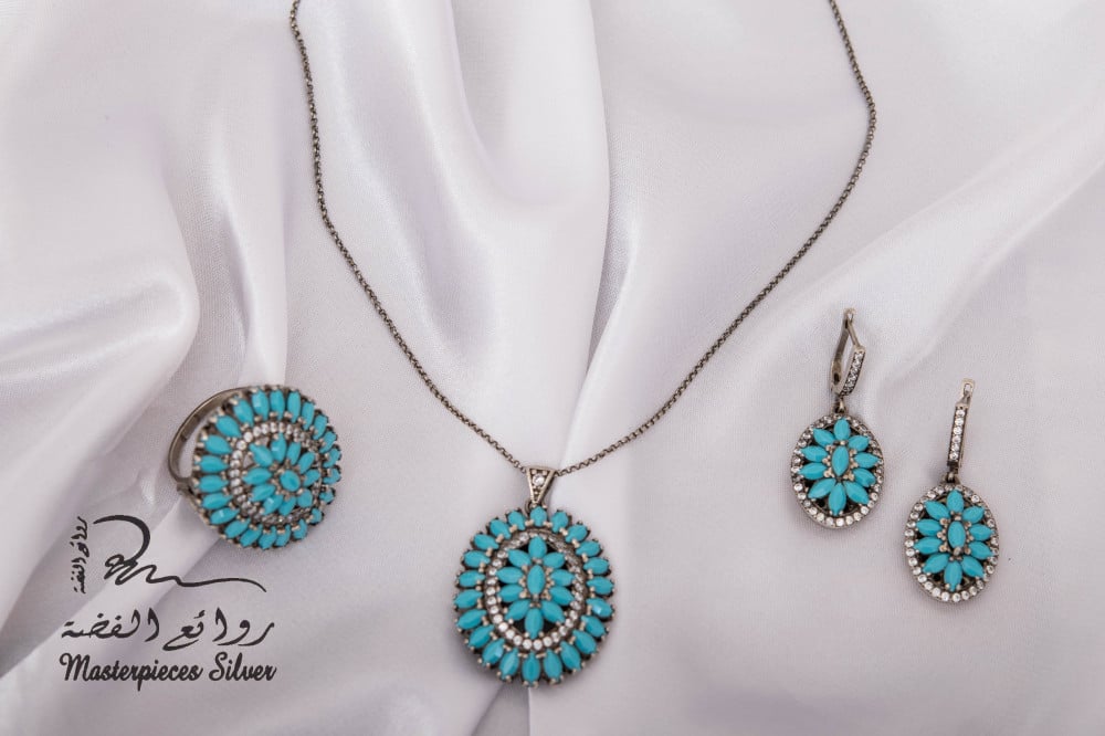 طقم فضة فخم بحجر الفيروز