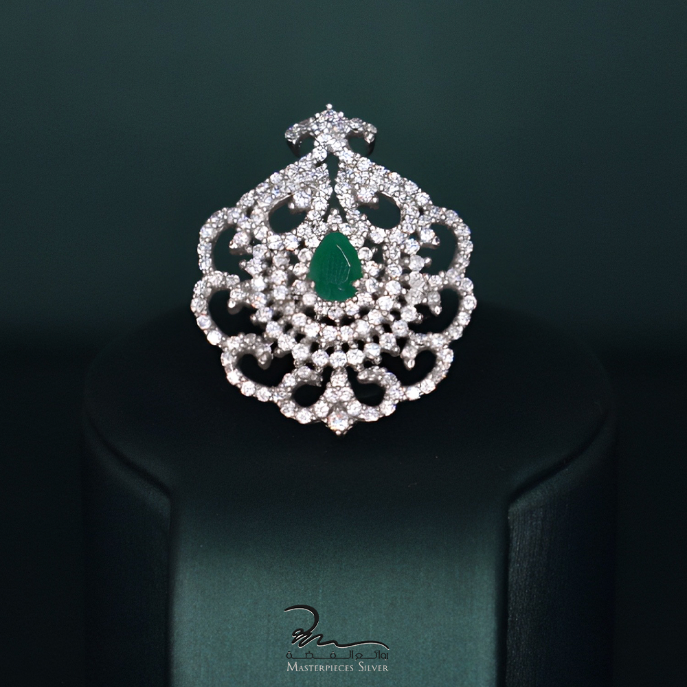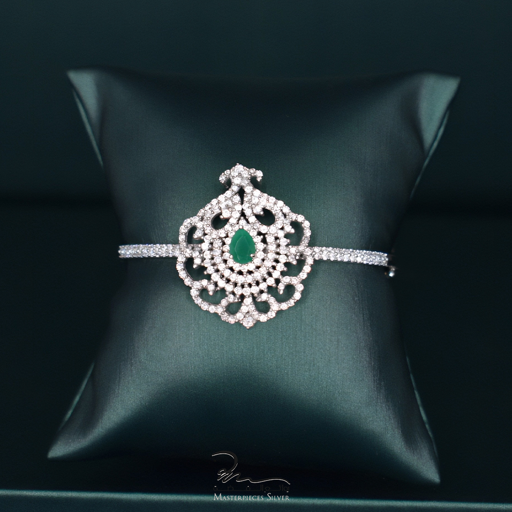 ✅ الأحجار: زركون نقي متلألئ مع لمسات من الأحجار الخضراء 💚