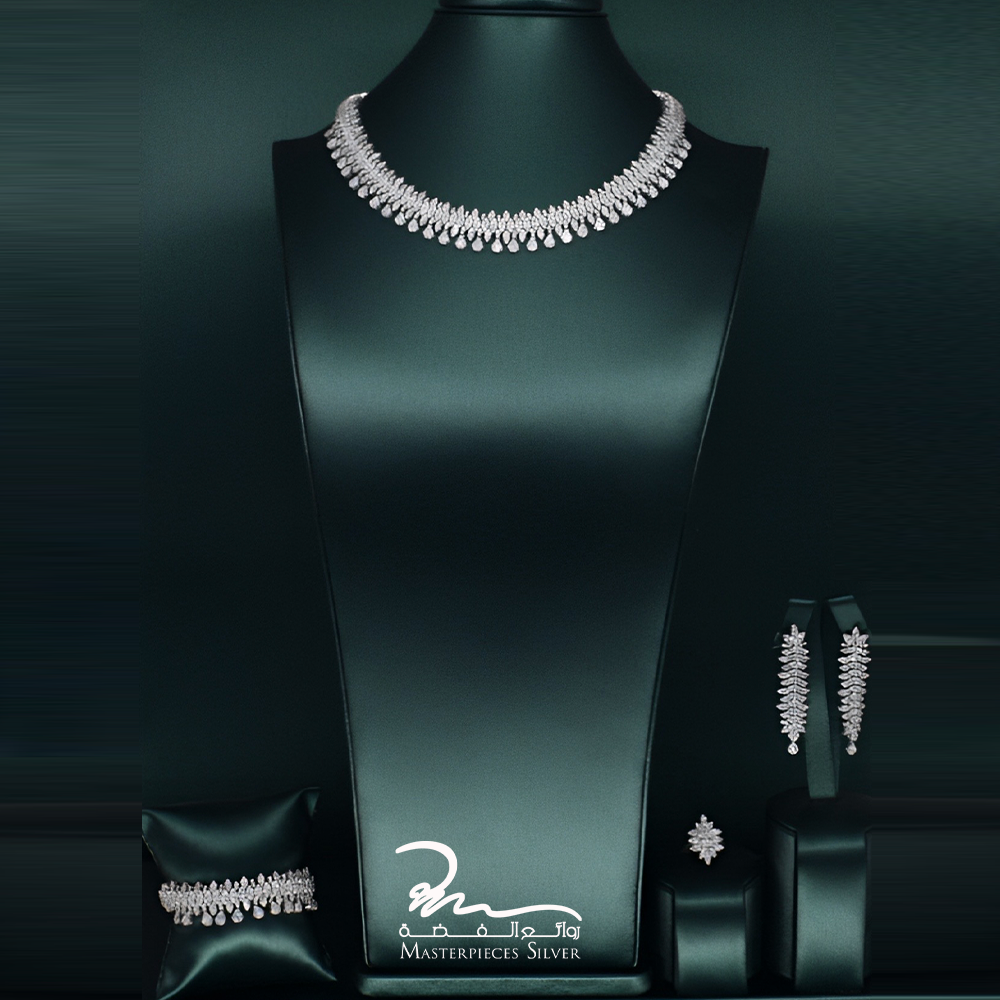 طقم كامل من عقد, خاتم, اقراط, اسورة مرصعين بالزركون.