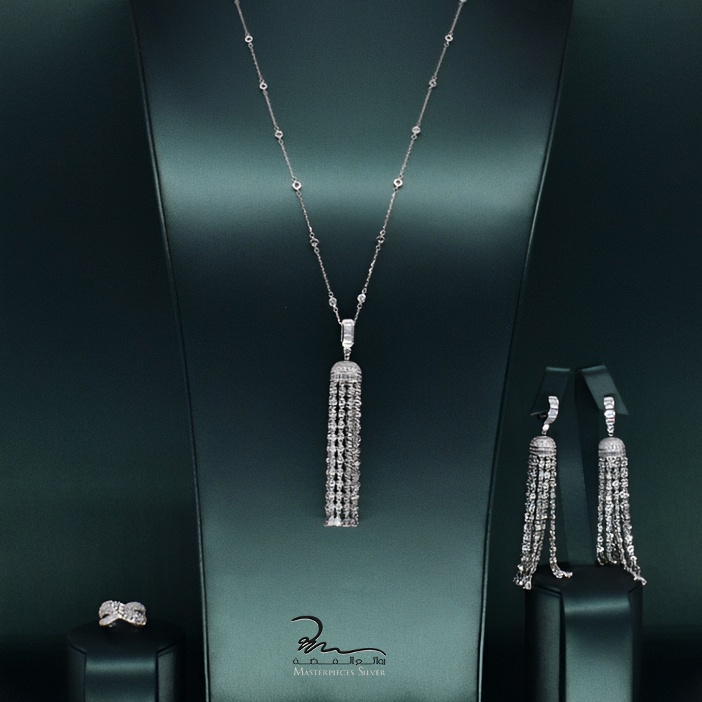 إذا كنتِ تبحثين عن الأناقة والرقي في قطعة مجوهرات واحدة، فإن طقم الفضة الأصلي الفاخر هذا هو الخيار المثالي! 😍