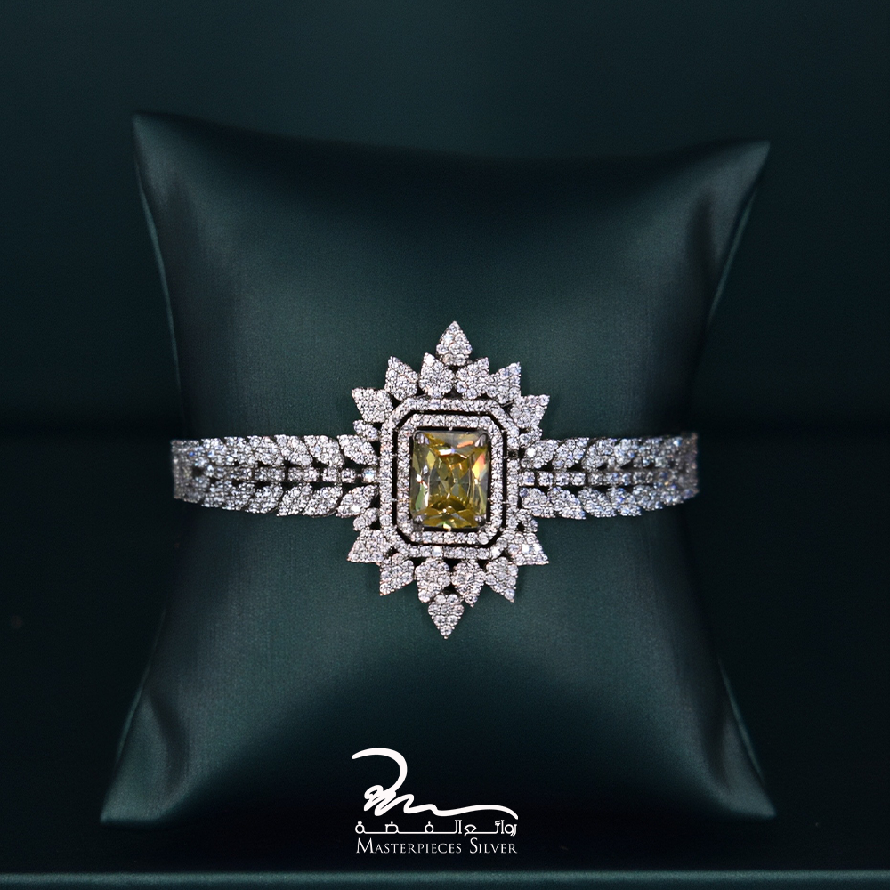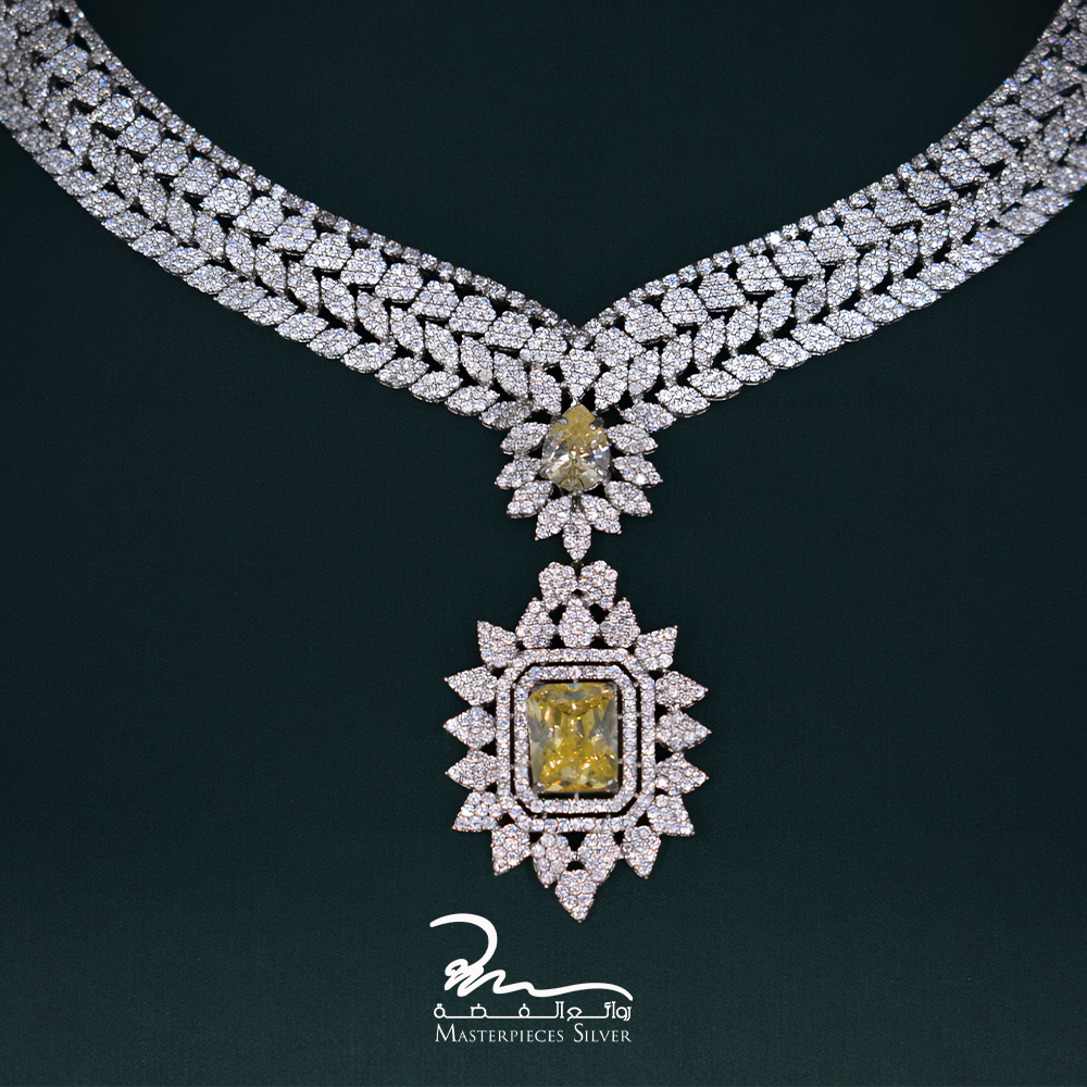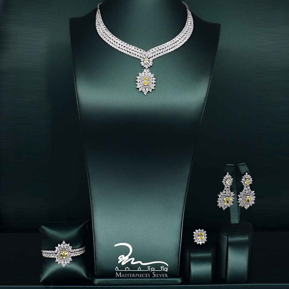 إذا كنتِ تبحثين عن مجوهرات فاخرة تضفي لمسة من الفخامة والتميز على إطلالتك، فإن طقم الفضة الملكي المرصع بالزركون الأصفر هو الخيار الأمثل لكِ! يتميز هذا الطقم بتصميمه الأنيق الذي يجمع بين الفضة النقية وأحجار الزركون اللامعة بتدرجات اللون الأصفر المذهلة، مما يمنحكِ مظهرًا ساحرًا في جميع المناسبات.