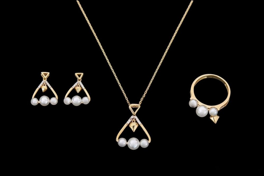 - وجاء حجر الزركون الماسى واعترض كيف لحبات اللؤلؤ أن تبقى بدونى فصار لها الحارس طقم من ثلاث قطع مميزة كل قطعه تحمل ثلاث حبات من اللؤلؤ الزراعي وجوهرة ذهبية كتاج لها.