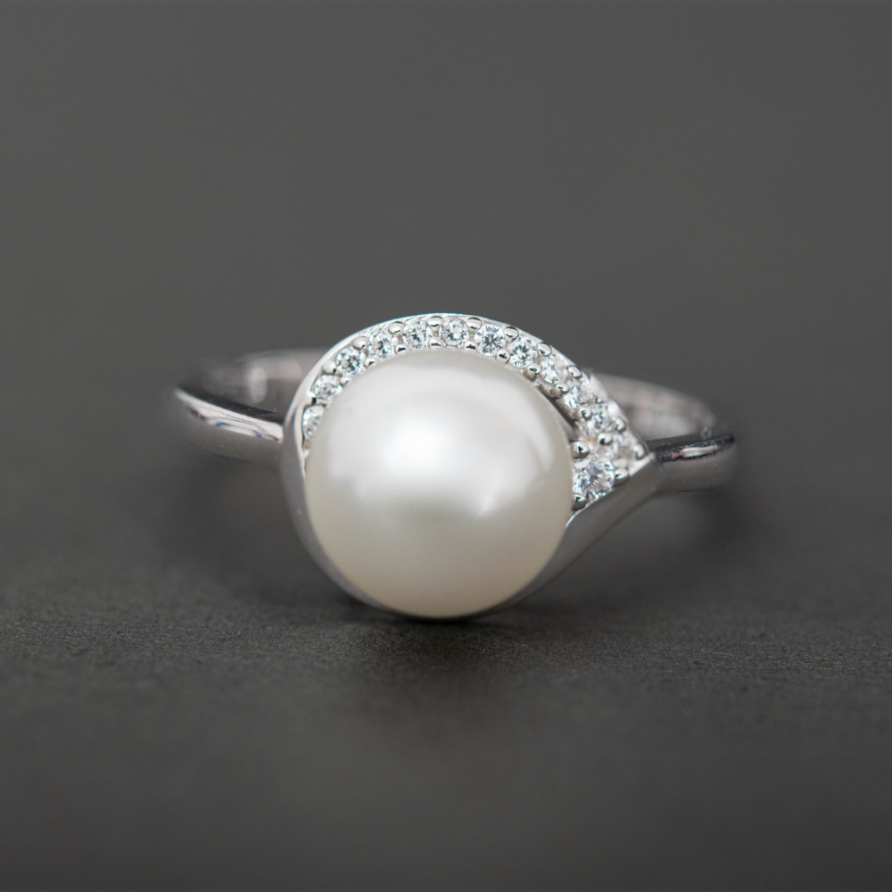 - وخاتم توجت على رأسه حبة لؤلؤ تدور حولها قطعة مجوهرات صغيرة من حجر الزركون