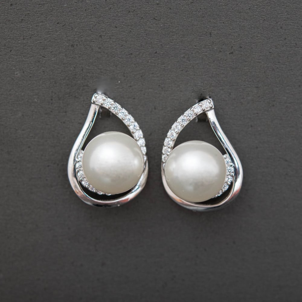 - زوج أقراط يكتمل به تلك القطع المميزة به حبة لؤلؤ