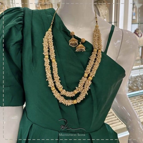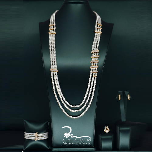"طقم لؤلؤ فاخر مع الفضة والزركون بتصميم أنيق يبرز جمالك ويعكس أصالة الذوق السعودي"