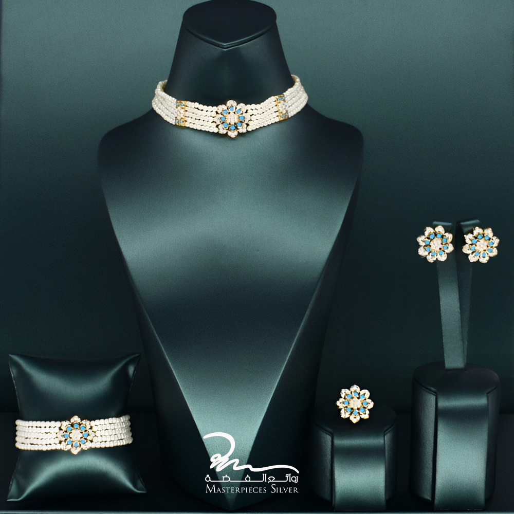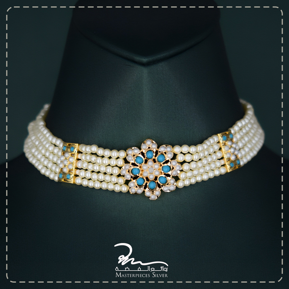 إذا كنتِ تبحثين عن الأناقة والفخامة في قطعة واحدة، فإن هذا الطقم الفاخر من اللولو القصير والأحجار الكريمة هو الخيار المثالي لكِ! 🌟 مصنوع شغل يدوي بدقة متناهية ليضفي لمسة من الرقي والجمال على إطلالتكِ في المناسبات الخاصة والأعراس.