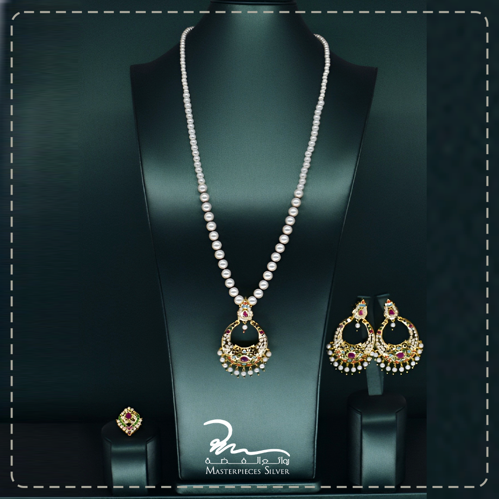 طقم لؤلؤ هندي باحجار كريمة فاخر