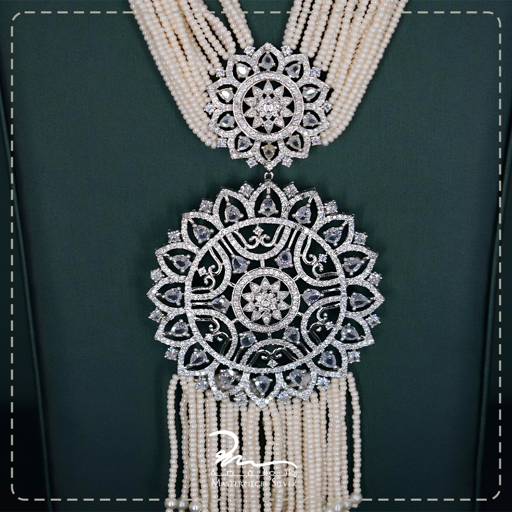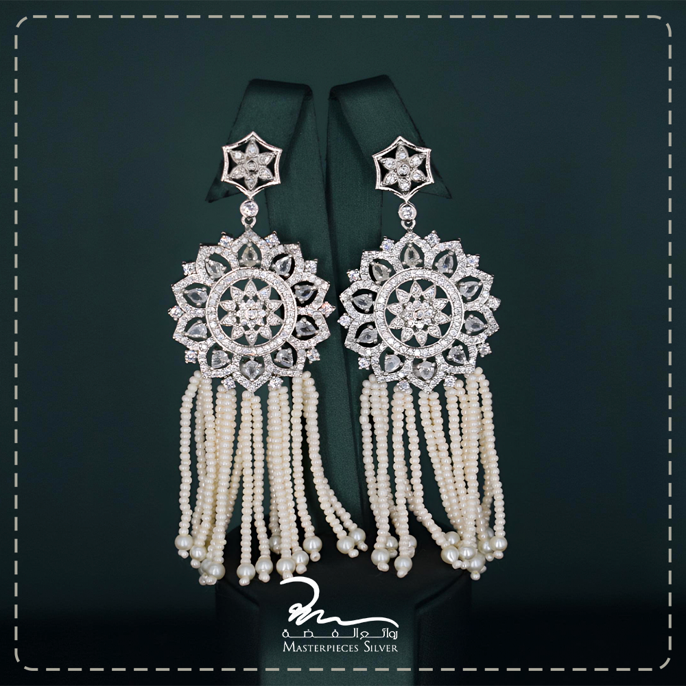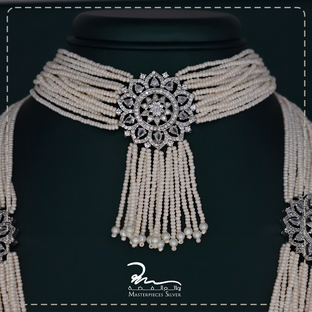 طقم لؤلؤ وفضة بالزركون شبيه الالماس