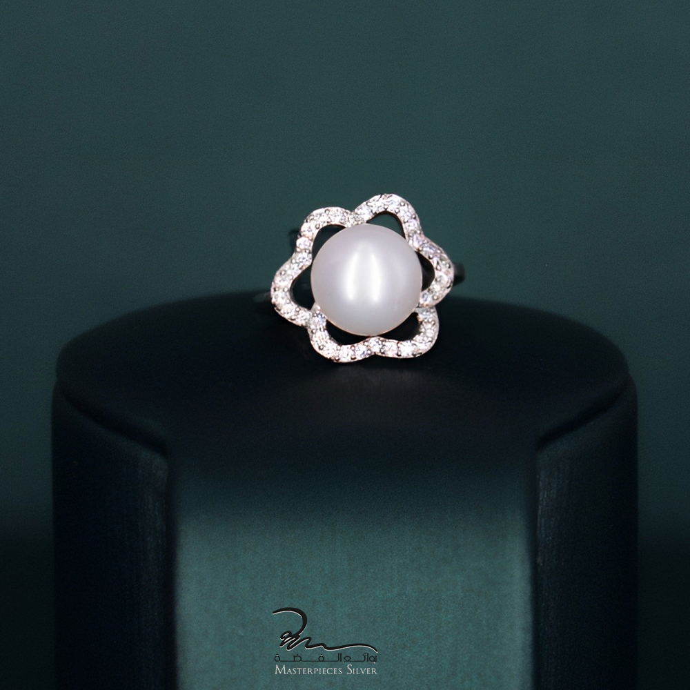 - الخاتم: فضة اصلي قطعة راقية تبرز جمال يدك بتصميم فاخر يتوسطه حجر لؤلؤ طبيعي.