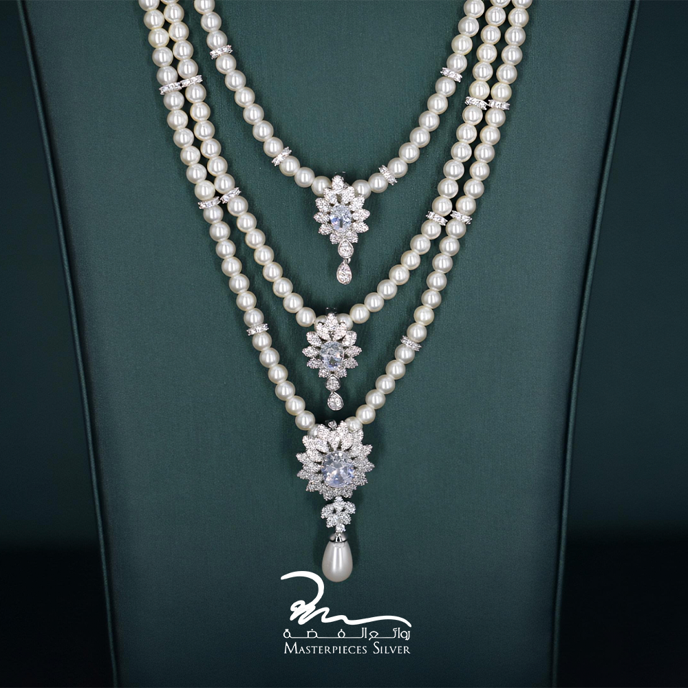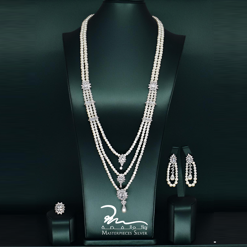طقم لؤلؤ فاخر من Masterpieces Silver – أناقة لا تنتهي اكتشفي روعة التفاصيل مع طقم اللؤلؤ الفاخر من Masterpieces Silver، المصنوع بدقة من أجود أنواع اللؤلؤ والفضة الخالصة. تصميم متعدد الطبقات يجمع بين الكلاسيكية والعصرية ليمنحك إطلالة مميزة في جميع مناسباتك.
