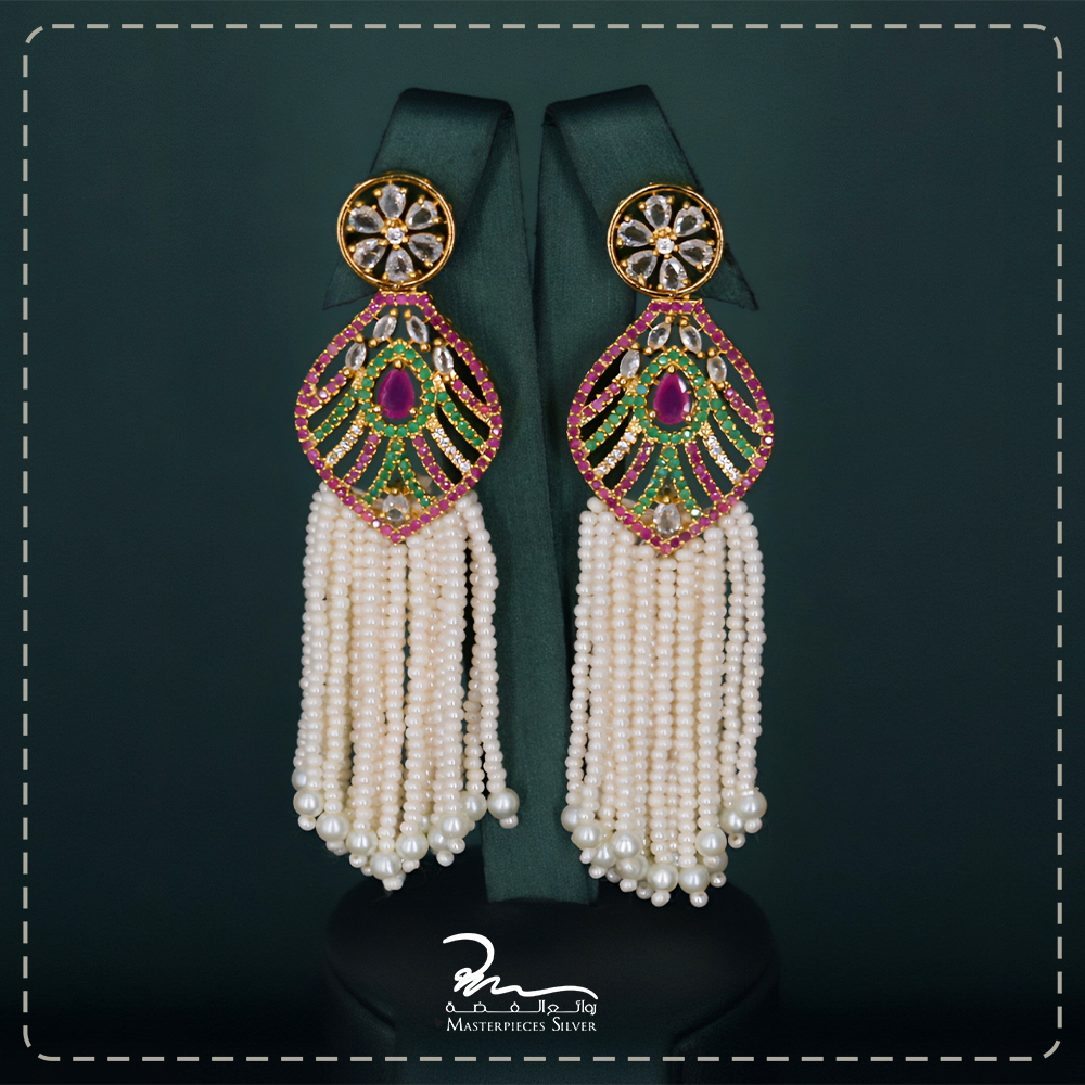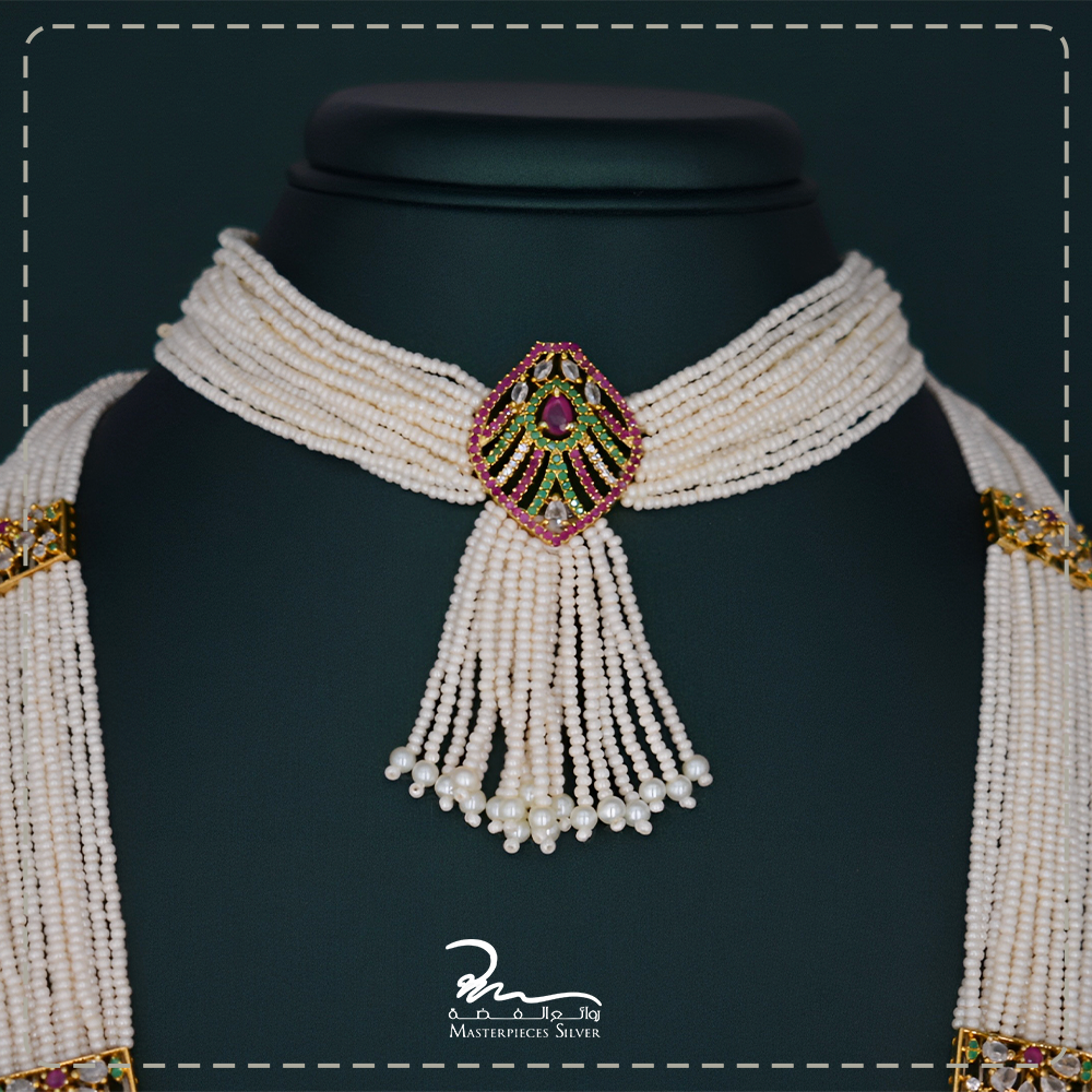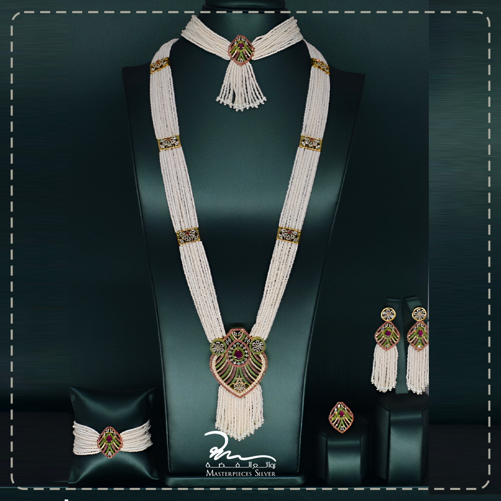 طقم لولو هندي للمناسبات,, صنع الطقم اللؤلؤ كامل بتصميم فاخر و مميز من روائع الفضة ليناسب الاذواق الرفيعة من حبات اللؤلؤ الزراعي_طبيعي