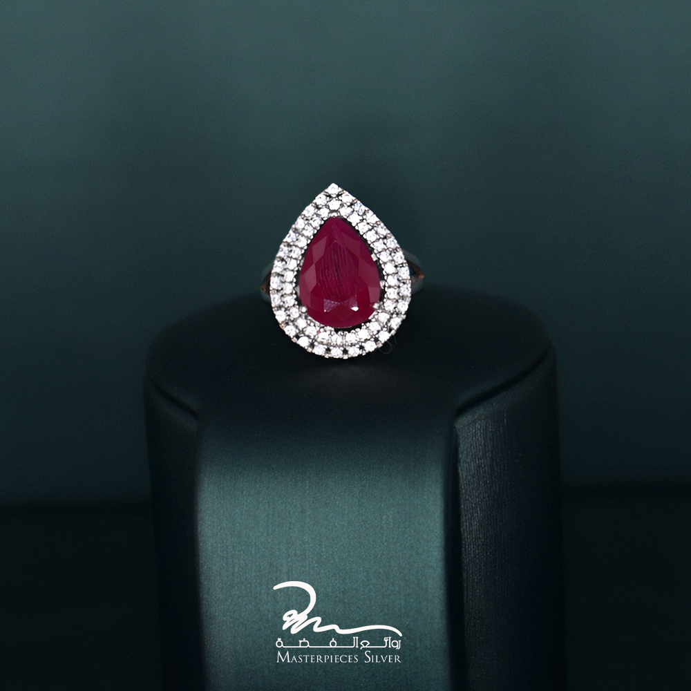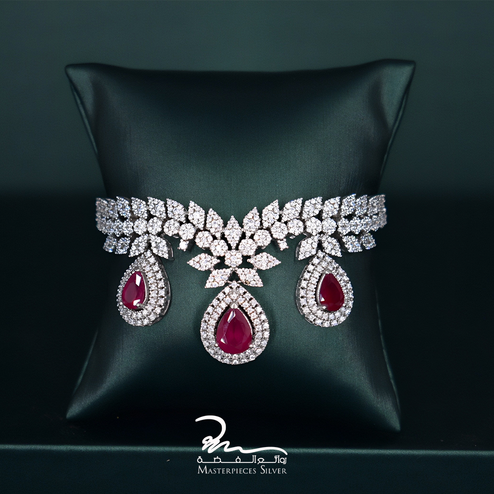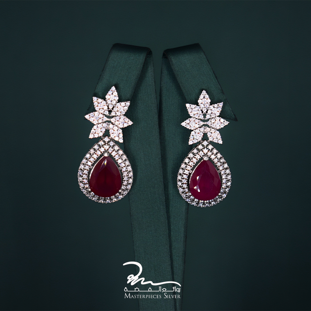 • نوع الأحجار: صمم بحجر الزركون شبيه الألماس واحجار الروبي زهرية اللون.
