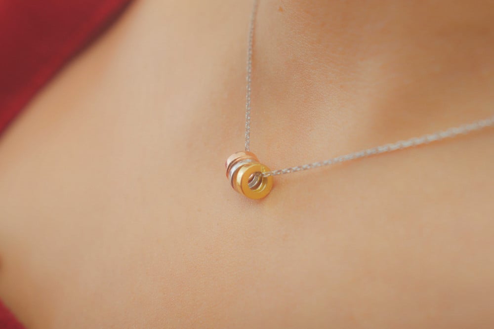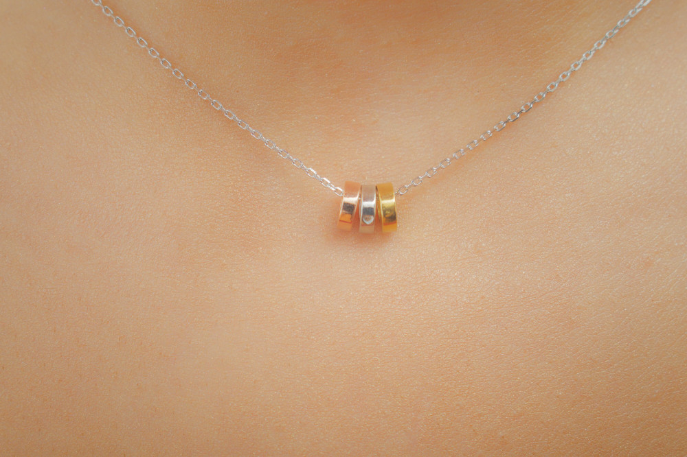 عقد فضة بثلاث الوان الذهبي والفضي مع الروز قولد