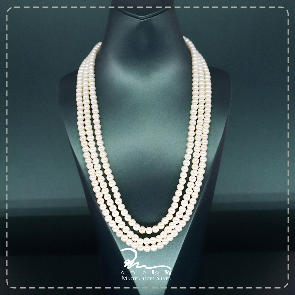 عقد لؤلؤ بثلاث طبقات – أناقة خالدة بكل التفاصيل
