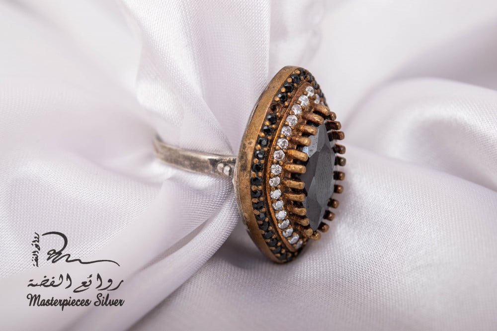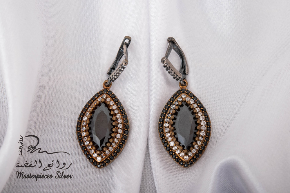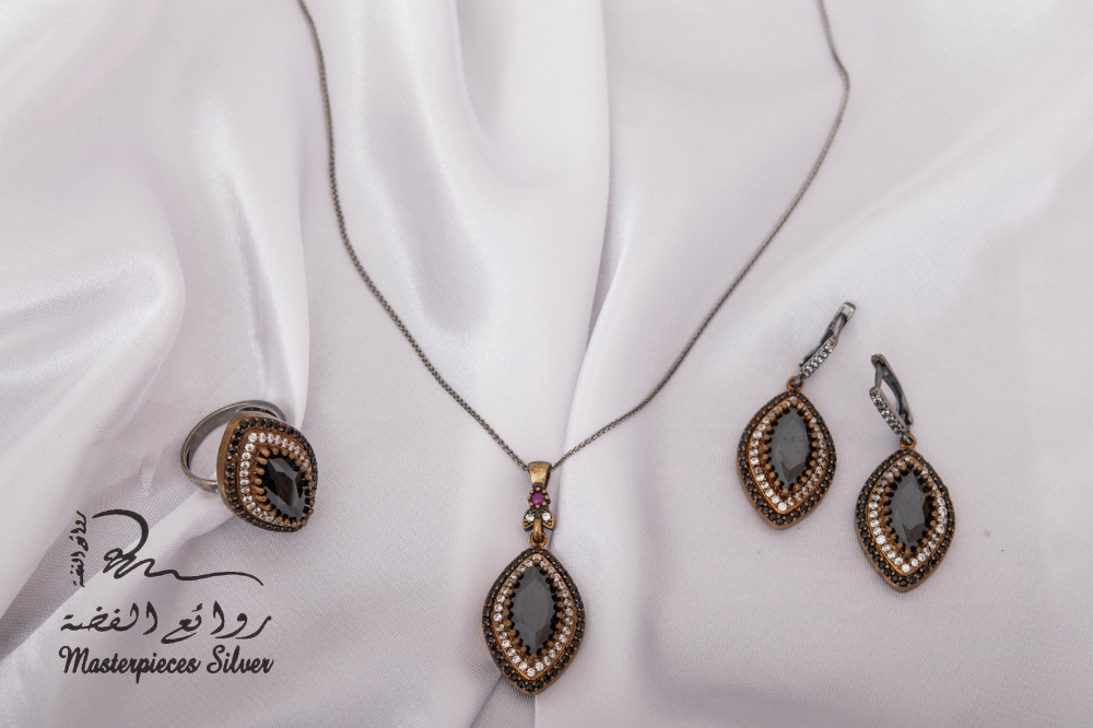 نصف طقم فضة تركي معتقة حجر زركون الأسود